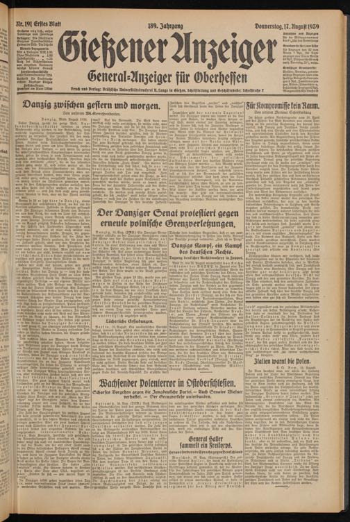 Donnerstag, ir. August 1939