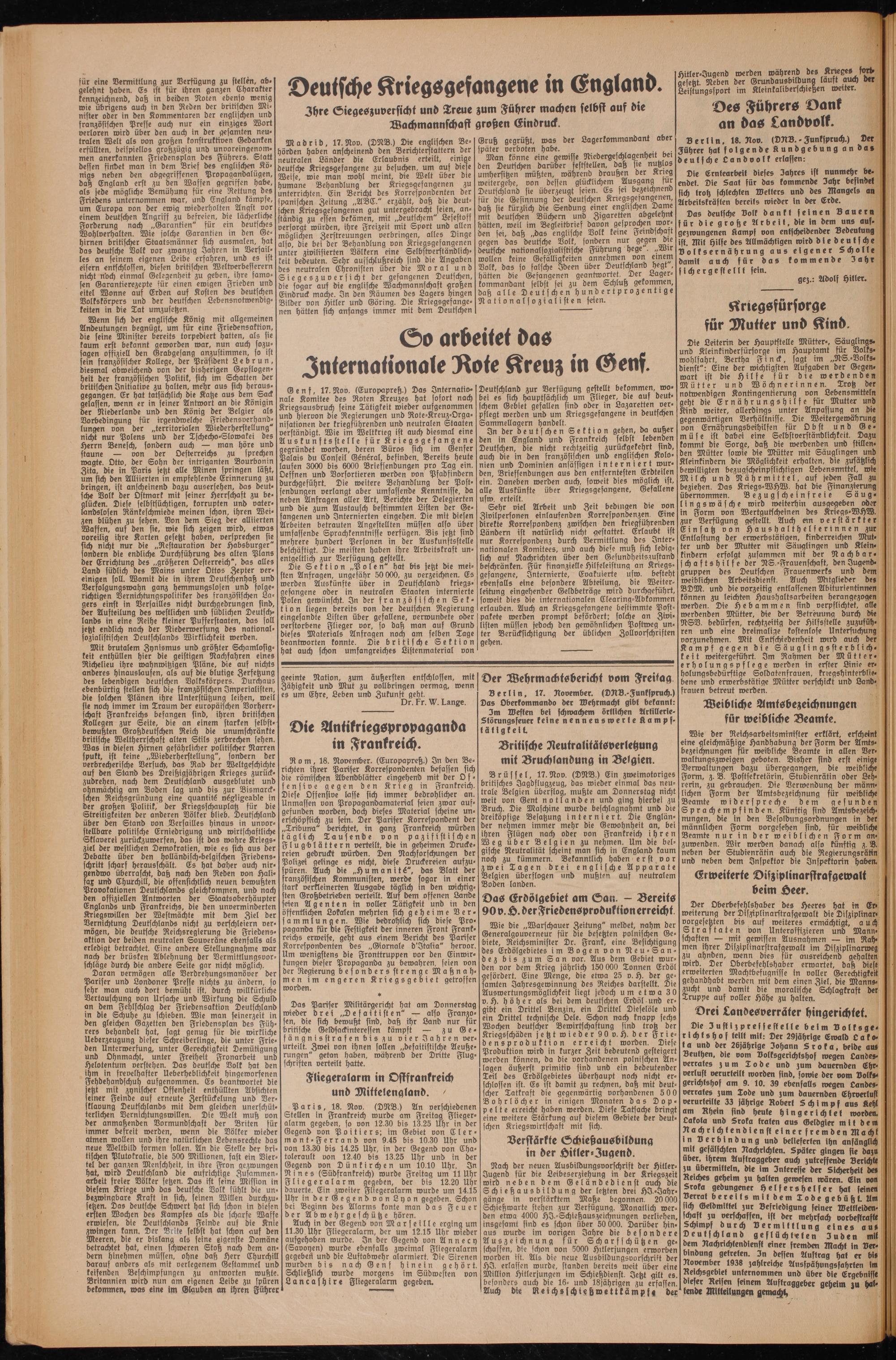 es um Ehre, Leben unb Zukunft gebt. Berlin, 17. Rovember. (DRB.-Funkfprnch.)