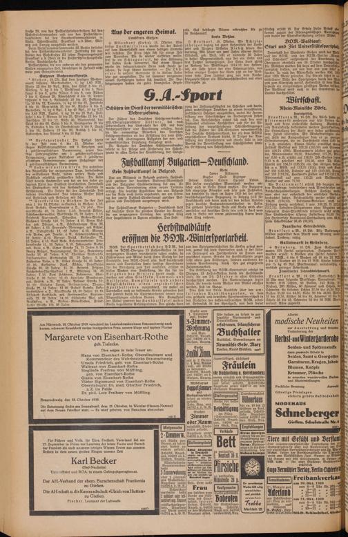 Die Beisetzung findet am Sonnabend, dem 21. Oktober, in Wetzlar (Hessen-Nassau) auf dem Neuen Friedhof statt — Es wird gebeten, von Besuchen abzusehen.
