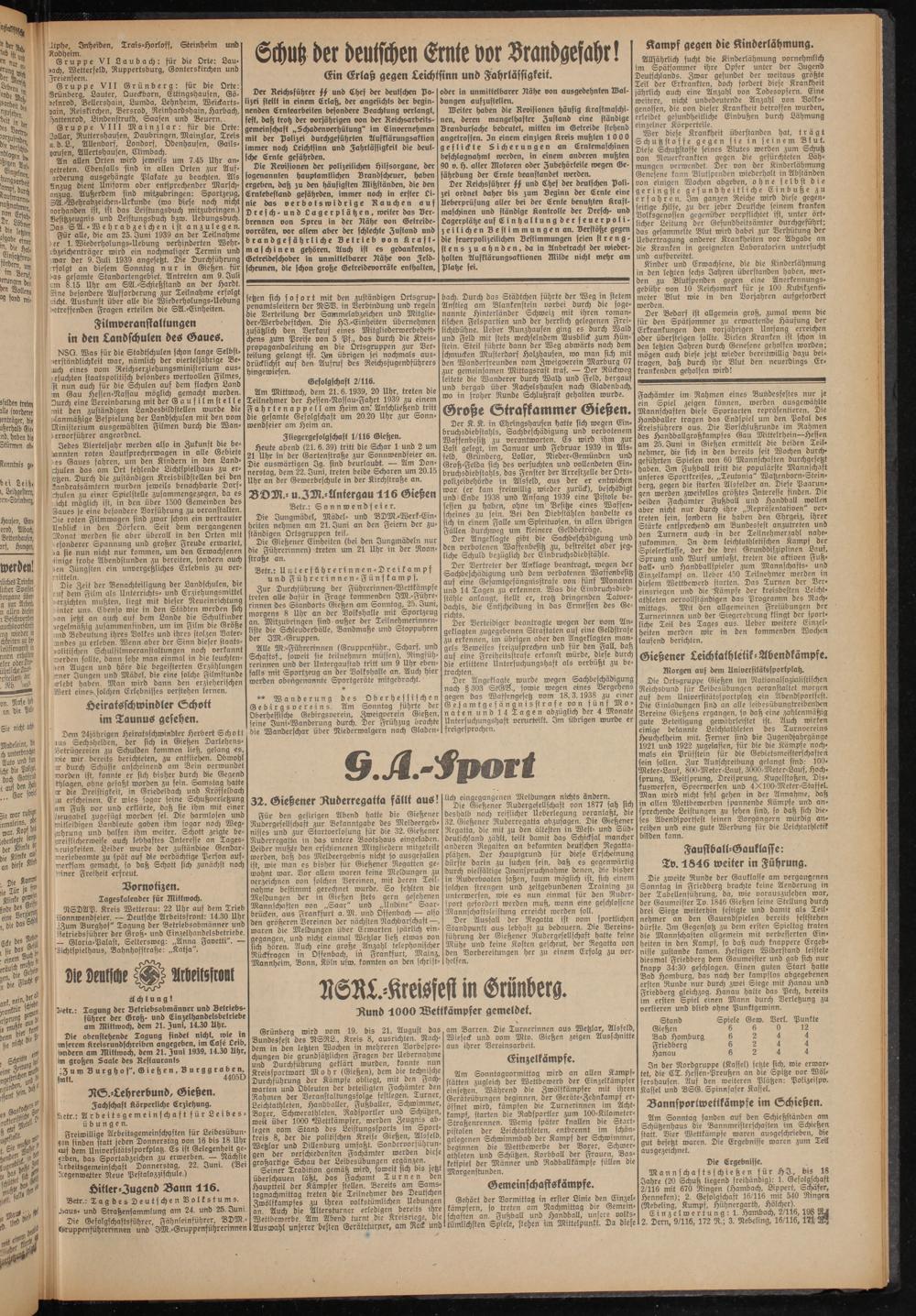 Mannschaftsschießen für HI., bis 18 Jahre (20 Schuß liegend freihändig): 1. Gefolgschaft 2/116 mit 670 Ringen (Hambach, Lippert, Schäfer, Henneken); 2. Gesolaschaft 16/116 mit 540 Ringen (Nebeling, Kumpf, Hühnergarth, Holcher).