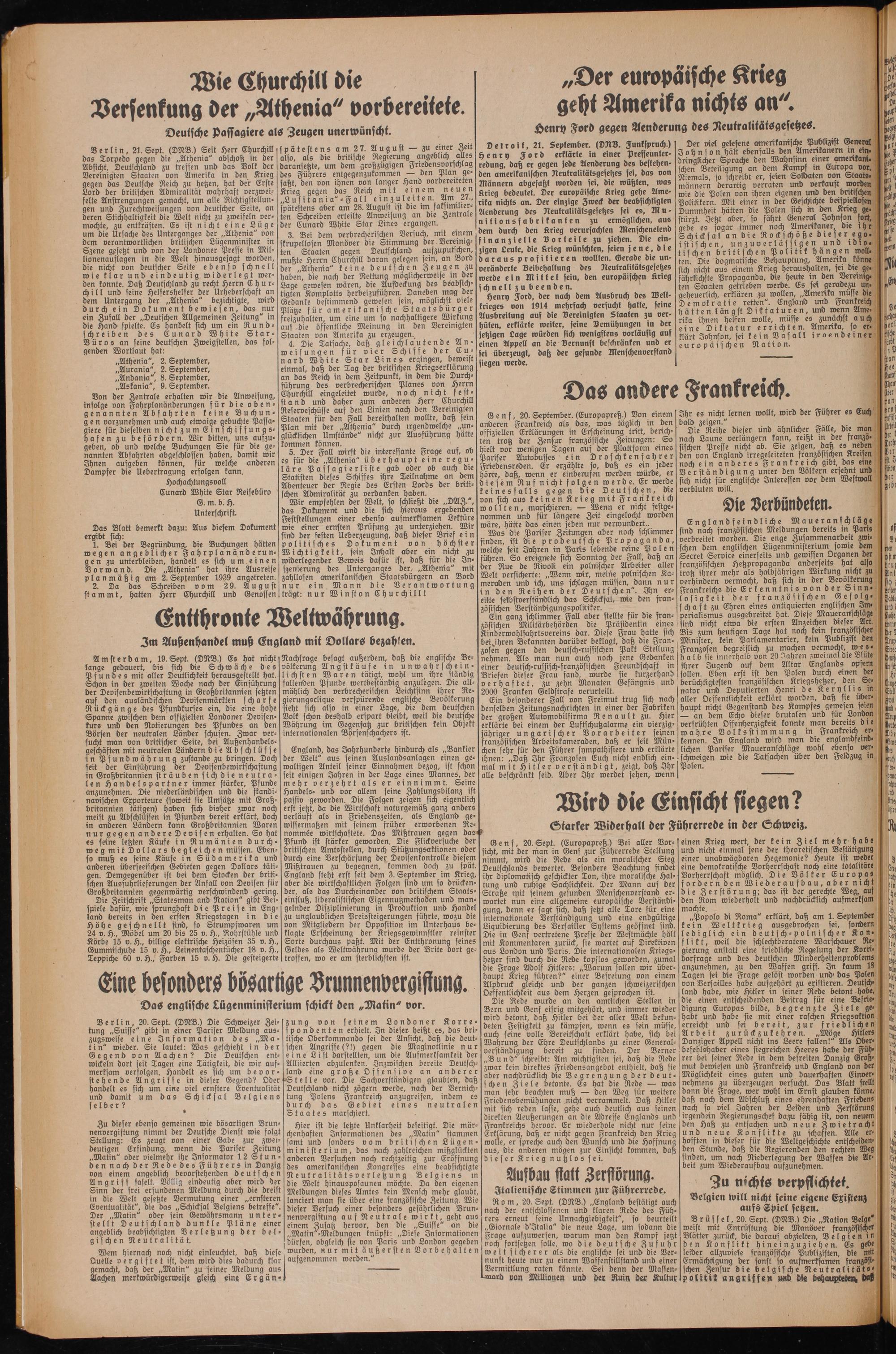 „Athenia", 2. September, „Aurania", 2. September, „Andania", 8. September, „Askania", 9. September.