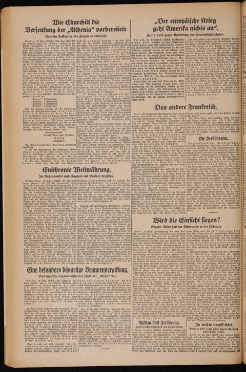 5. Der Fall wirft bie interessante Frage auf, ob es für bie „Athenia" überhaupt eine reguläre Passagierliste gab ober ob auch bie Statisten dieses Schiffes ihre Teilnahme an dem Abenteuer ber Regie bes Ersten Lvrbs der brittschen Admiralität zu verdanken haben.