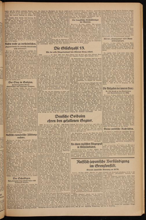Heute hat sich südlich Zamocz nach tage- angen Kämpfen der Gegner, der bisher an dieser Stelle zähen Widerstand leistete, ergeben. Mehr als wei findliche Infanterie-Divisionen, eine Kavallerie- nb eine motorisierte Brigade standen dort unseren Gruppen gegenüber. 11 000 Mann haben sich eute gefangen gegeben, darunter der ) b erb e fehlsh ab e r der polnschen Südarmee, General Pi stör. Nicht nur die Marschleistungen es deutschen Südflügels waren außerordentlich, euch die seit dem 10. September erzielten Gefangenen- und Beutezahlen reihen sich würdig an den «ewaltigen Erfolg unserer im großen Weichselbogen suhlenden Truppen an. 50 OOO Gefangene, 108 leichte und 22 schwere Geschütze sowie zahlloses erbeutetes toegsgerät zeugen- von den Leistungen der in Ga- izien kämpfenden Truppen.
