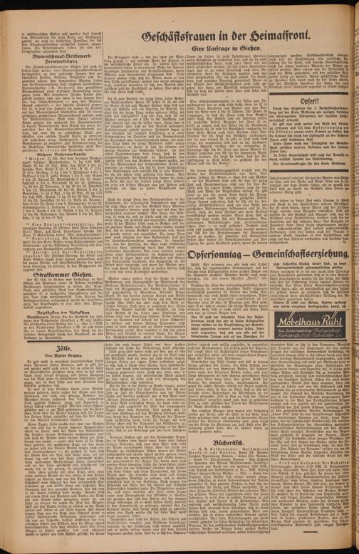 So stehen in dieser Zeit viele Frauen in Stadt und Land in der Heimatfront unserer Wirtschaft Es ist allen denen, deren Mann jetzt die Uniform trägt, manche neue Aufgabe erwachsen. Und alle müssen sie mit Geschick und Energie nicht nur die Pflichten einer Geschäftsfrau, sondern auch die der Hausfrau auf sich nehmen, denn ihre Aufgabe als Hausfrau kann ihnen kaum ab genommen werden. Die außerordentliche Zeit fordert außerordentliche Leistungen. Und das haben auch die Frauen in unserer Stadt, draußen in den Landstädten unb auch auf den Dörfern verstanden und handeln dementsprechend. N.