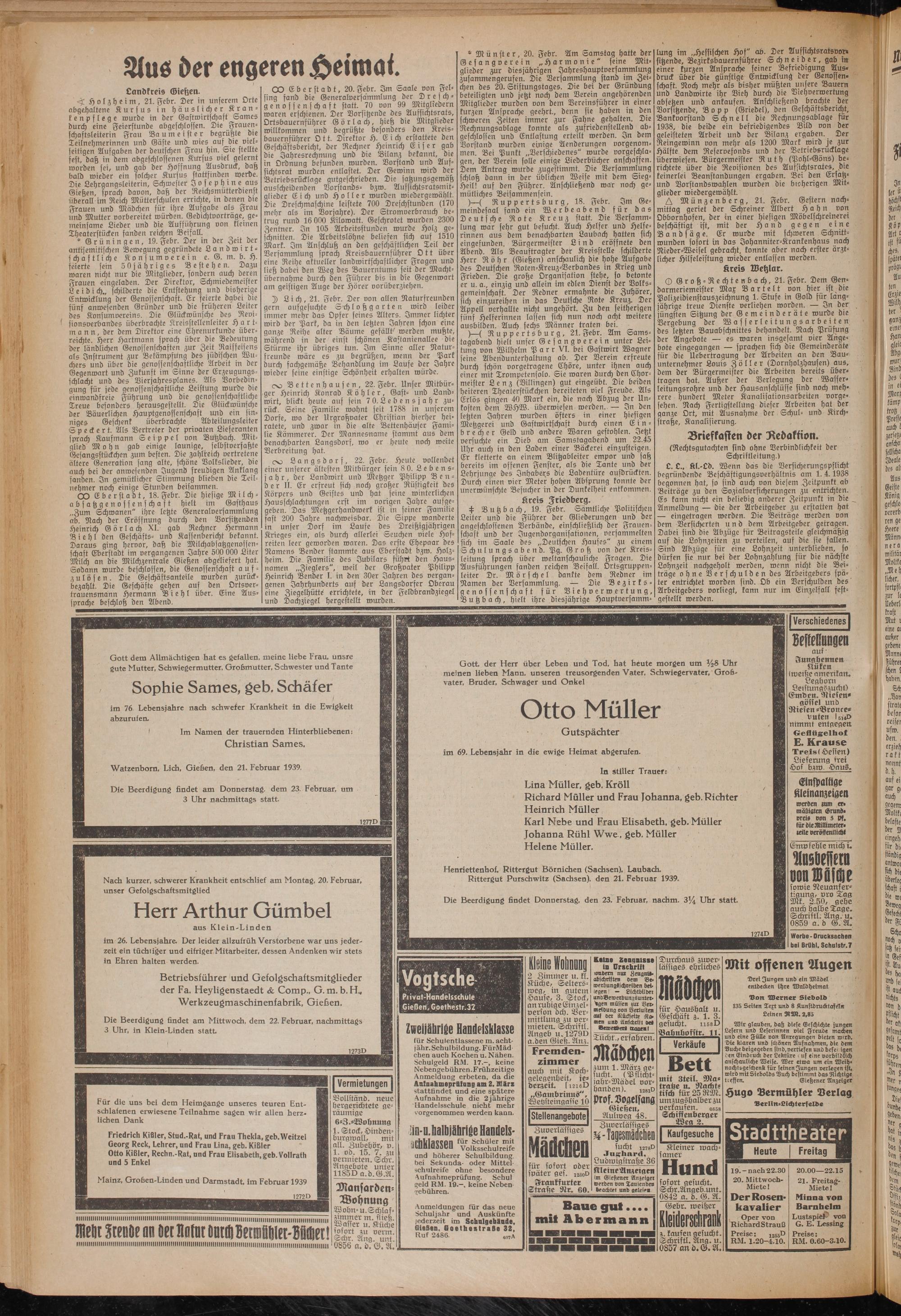 Watzenborn, Lieh, Gießen, den 21. Februar 1939.