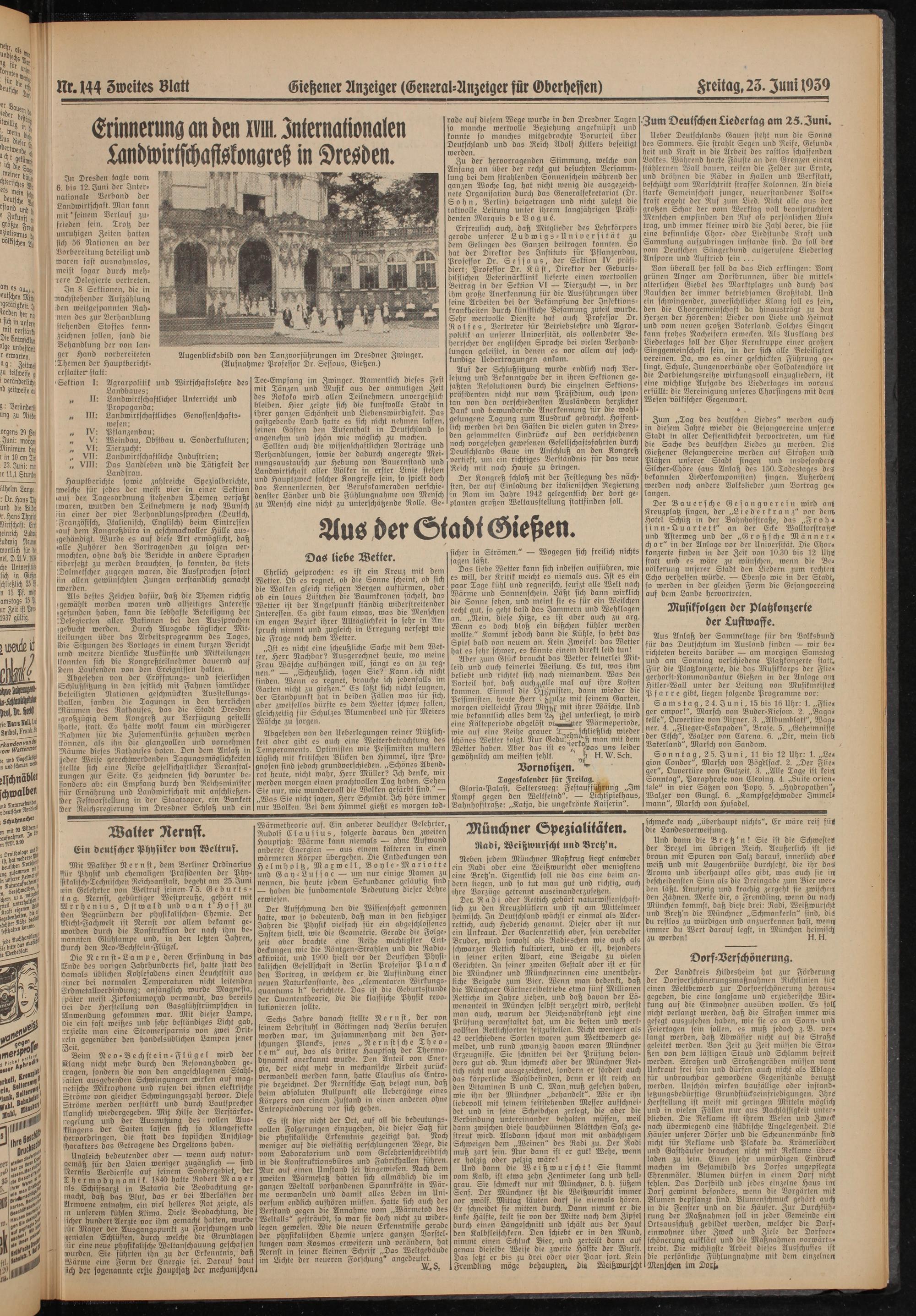 Aus der Schlußsitzung wurde endlich nach Verlesung und Bekanntgabe der in ihren Sektionen gefaßten Resolutionen durch die einzelnen Sektionspräsidenten nicht nur vom Präsidium, auch spontan von den verschiedensten Ausländern herzlicher Dank und bewundernde Anerkennung für die wohl- gelungene Tagung zum Ausdruck gebracht. Hoffentlich werden bei den Gästen die vielen guten in Dresden gesammelten Eindrücke auf den verschiedenen noch vorgesehen gewesenen Gesellschaftsfahrten durch Deutschlands Gaue im Anschluß an den Kongreß vertieft, um ein richtiges Verständnis für das neue Reich mit nach Hause zu bringen.