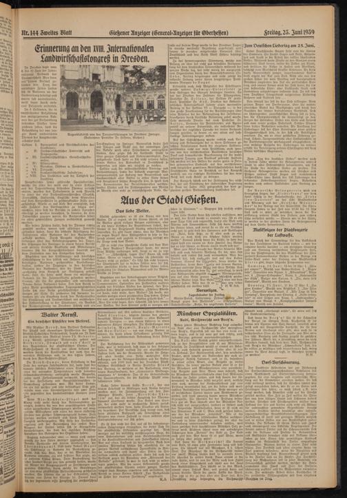 In Dresden tagte vom 6. bis 12. Juni der Internationale Verband der Landwirtschaft. Man kann mit * feinem Verlaus zufrieden fein. Trotz der unruhigen Zeiten hatten sich 56 Nationen an der Vorbereitung beteiligt und waren fast ausnahmslos, meist sogar durch mehrere Delegierte vertreten.