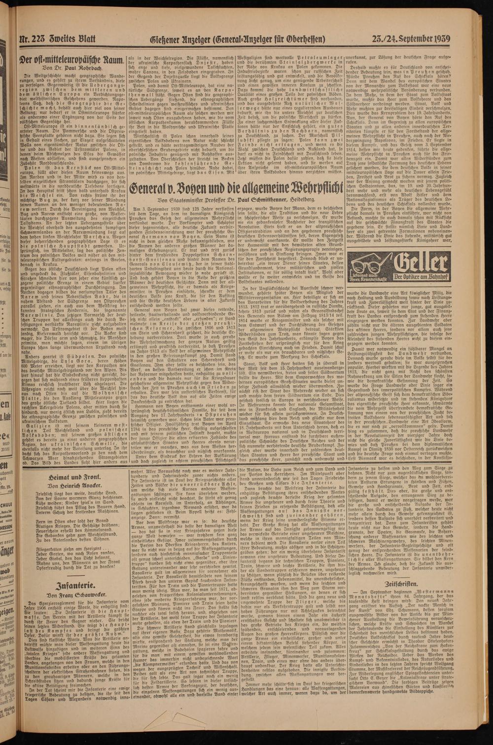 Am 3. September 1939 sind 125 Jahre verflossen seit dem Tage, an dem im damaligen Königreich Preußen das Gesetz der allgemeinen Wehrpflicht verkündet wurde. Der Vorkämpfer und Schöpfer dieser segensreichen, alle deutsche Zukunft verbürgenden Friedenseinrichtung war der preußische General Hermann von Boyen. Sein Name ist nicht in dem gleichen Maße bekanntgeblieben, wie die Namen der anderen großen Männer der damaligen Erhebungszeit. Er trat und tritt zurück hinter dem strahlenden Doppelgestirn S ch a r n - Horst-Gneisenau und hinter dem Namen des Generals von Clausewitz, der in seiner stahl- harten Unbedingtheit uns heute durch die Nationalsozialistische Bewegung wieder so nahe gerückt ist. Und doch gehört Boyen in die Reihe der größten Männer der deutschen Geschichte. Denn mit der allgemeinen Wehrpflicht, die er damals als Kriegsminister in Preußen einführte, schenkte er dem deutschen Volke jene Kraft, die für den Aufstieg und die Größe deutschen Lebens in aller Zukunft entscheidend werden sollte.