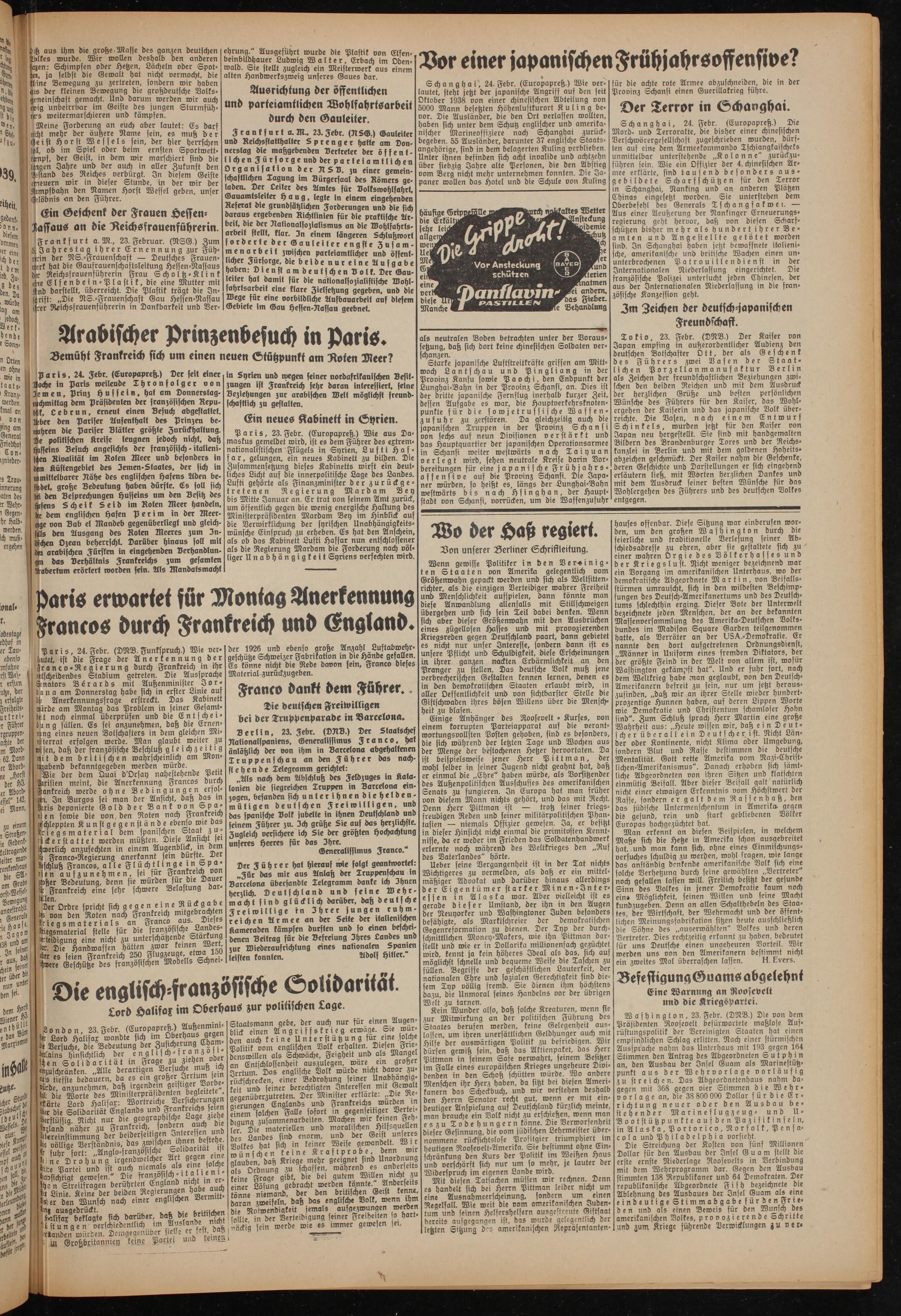 Jranlfurl a. m. 23. Febr. (US®.) Gauleiter und Reichsstatthalter Sprenger hatte am Don-