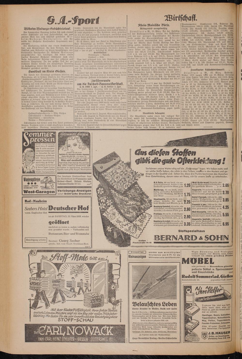 Der heutigen Stadtauflage liegt ein Werbeblatt der Commerz- und Privat-Bank. Filiale Gießen. Fohannesstraße 17 bei. 2io3D