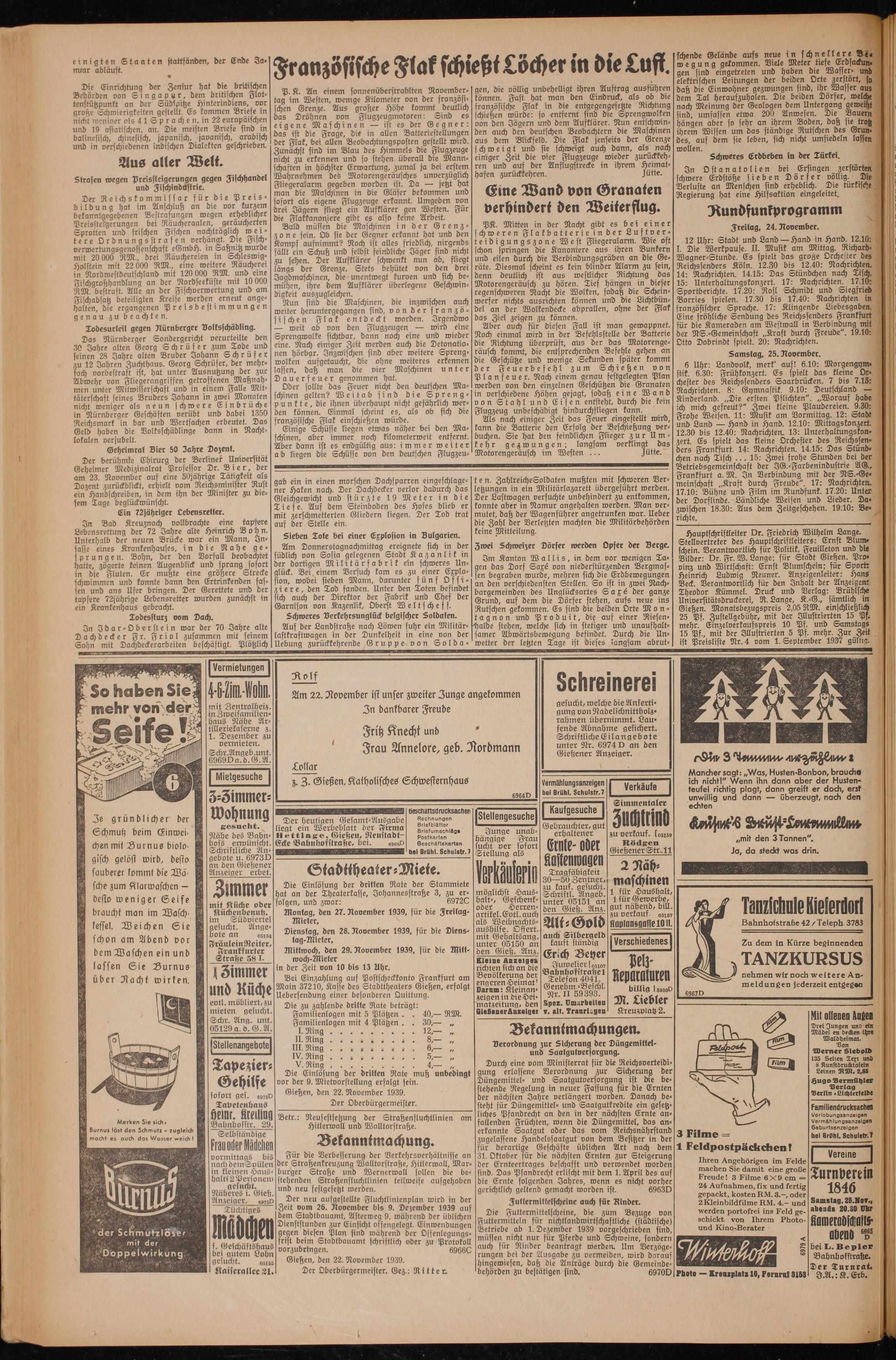 Gießen, den 22. November 1939.