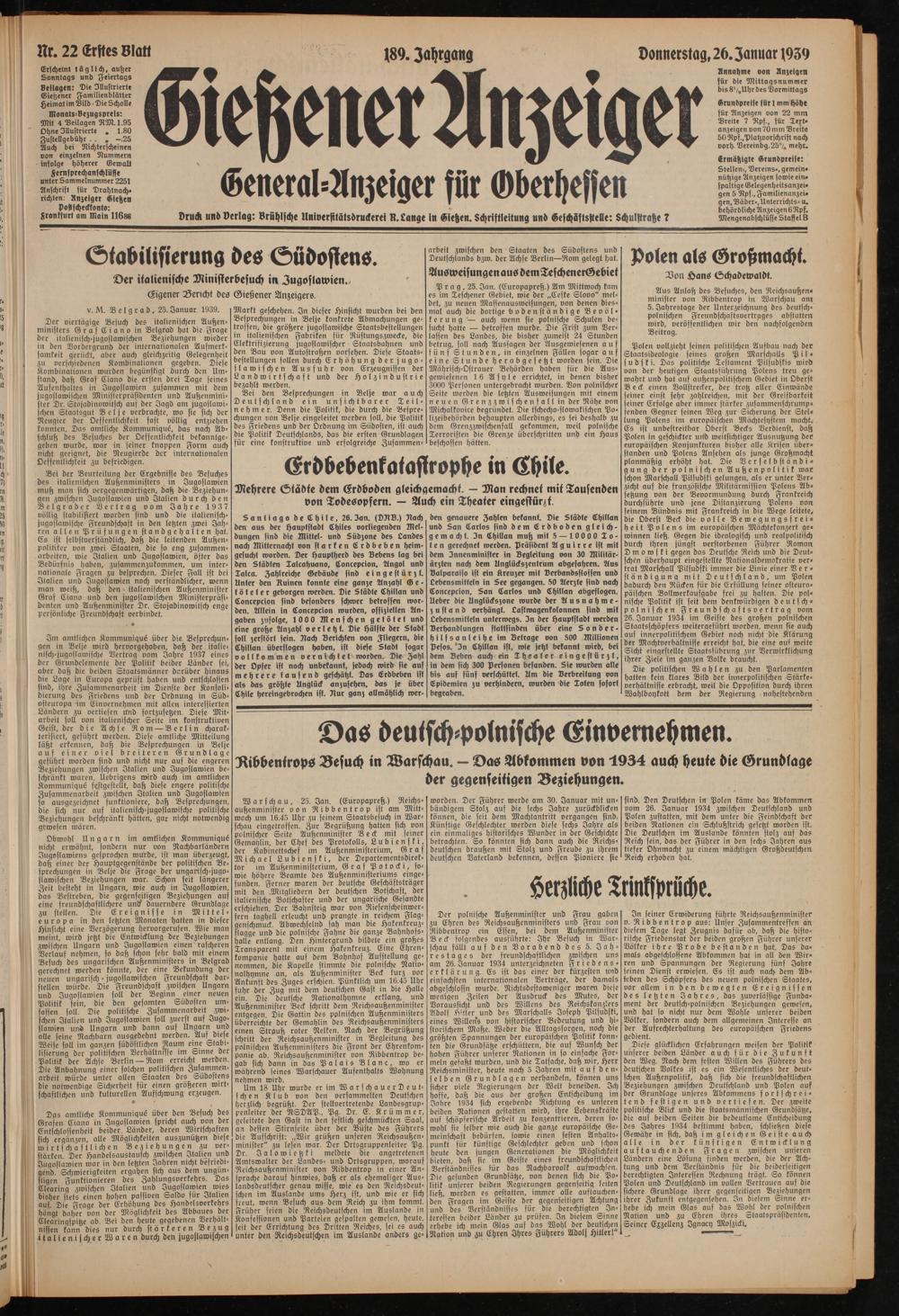 sind. Den Deutschen in Polen käme das Abkommen vom 26. Januar 1934 zwischen Deutschland und Polen zustatten, mit dem unter die Feindschaft der beiden Nationen ein Schlußstrich gesetzt worden ist. Die Deutschen im Auslande könnten stolz auf das Reich sein, das der Führer in den sechs Jahren aus tiefer Ohnmacht zu einem mächtigen Großdeutschen Reich erhoben hat.