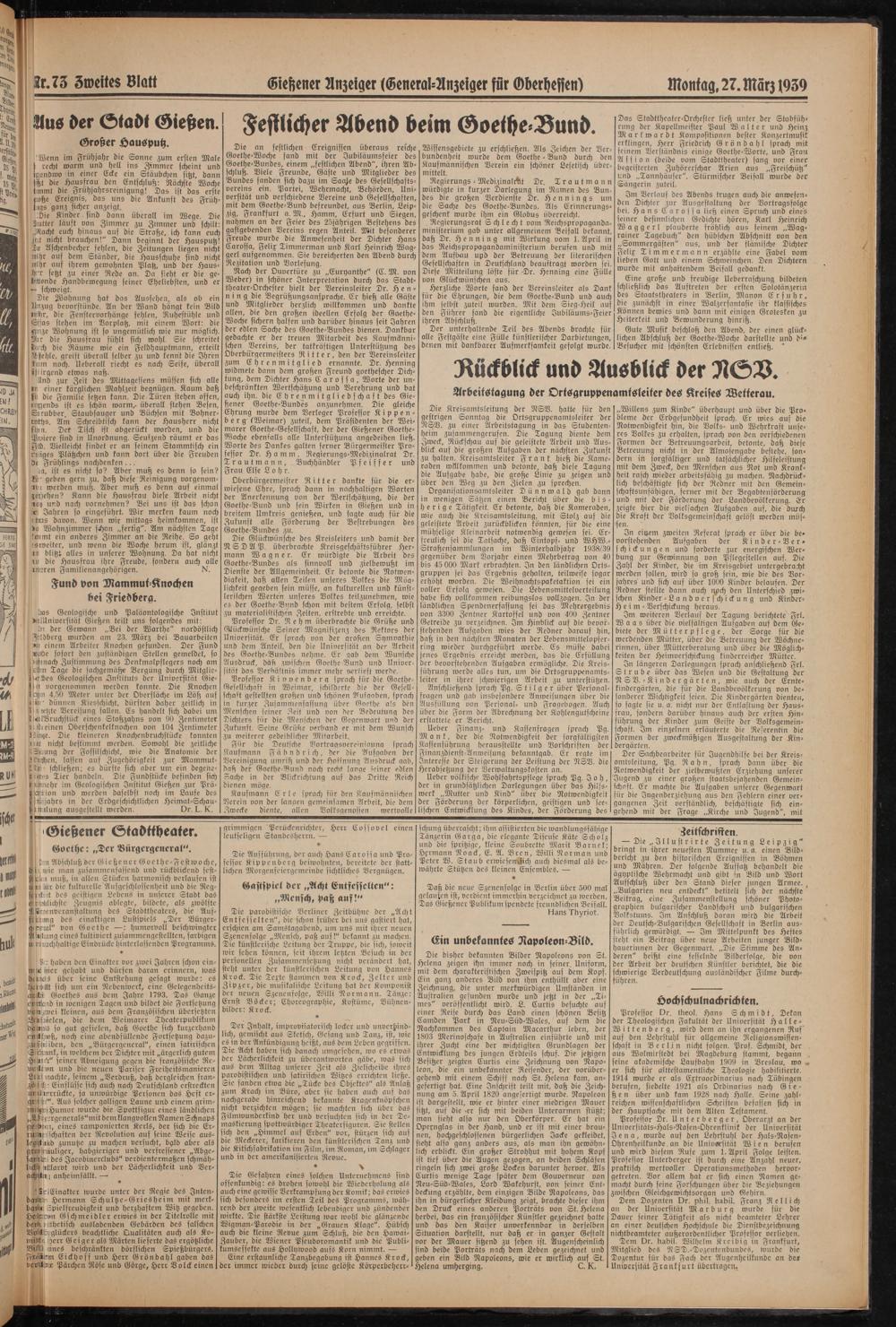 I dm Abschluß dcr Gießener Goethe-Festwoche, dl wie man zusammcnfassend und rückblickend fest- sij ek n muß, in allen Stücken harmonisch verlaufen ist ui rj iiir die kulturelle Aufgeschlossenheit und die Regst .iliiit des geistigen Lebens in unserer Stadt das ® ^ältlichste Zeugnis ablegte, bildete, als zwölfte SlIcncnDcranftaltung des Stadtthcaters, die Auf- fi titimg des einaktigen Lustspiels „Der Bürger- gjpnal" von Goethe —: humorvoll beschwingter A ii-king eines kultiviert zusammengestellten, farbigen u Inlwchhaltige Eindrücke hinterlassenden Programms.