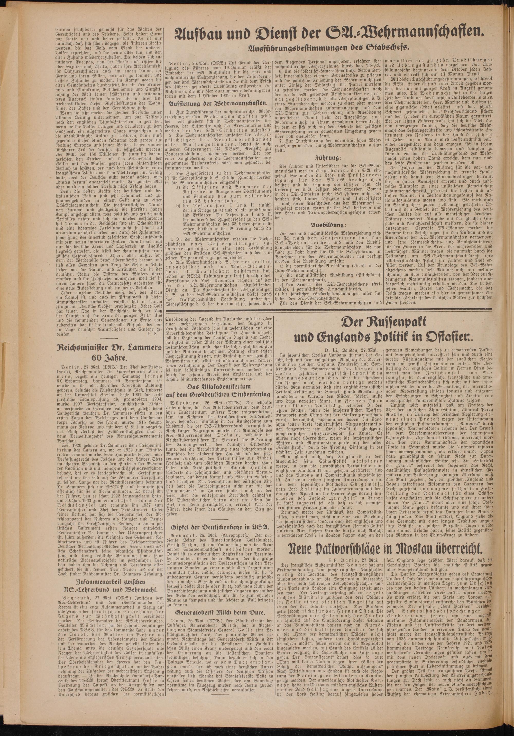 4. In den Wehrmanschaften werden die Wehrpflichtigen nach Waffengattungen zusammengefaßt, um eine enge Verbindung zwischen den örtlichen SA.-Einheiten und den einzelnen Truppenteilen zu gewährleisten.