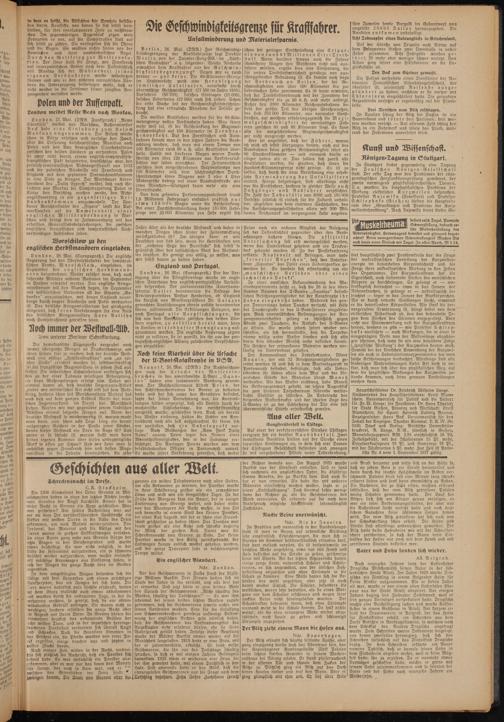 Hier sei angeführt, daß der Führer, wovon ich mich oft selbst überzeugen konnte, auch auf den Autobahnen keine größere Geschwindigkeit fährt als 80 Stundenkilometer — und niemand dürfte es eiliger haben als er. Das sollten sich zuerst alle Kraftfahrer merken, die glauben, daß ihnen die Hundert-Kilometergrenze nicht genügt. Es ist zu hoffen, daß durch die neue Verordnung eine erhebliche Verminderung der Unfallziffern eintritt. Hierzu beizutragen, sind allerdings nicht nur die Kraftfahrer, sondern in gleicher Weise auch Fußgänger und Radfahrer verpflichtet. Die Zahl der Todesfälle von 8000 und 180 000 Verletzte jährlich ist einfach für die Zukunft unhaltbar, abgesehen von dem enormen Sachschaden, den die Versicherungsgesellschaften allein mit 300 Millionen Reichsmark im vergangenen Jahr angeben.