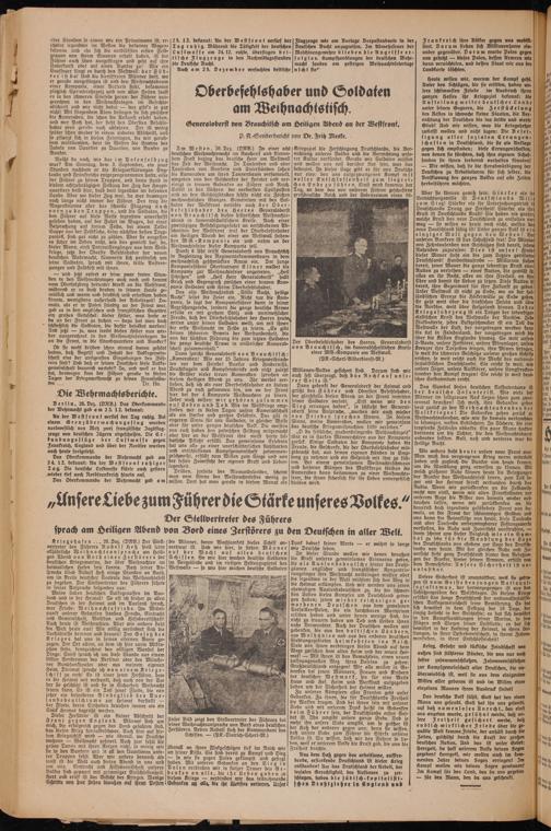 Flugzeuge wie am Vorlage Vorpostenboote in der Deutschen Bucht anzugreifen. 3m Abwehrfeuer der Maschinengewehre blieben die Angriffe erfolglos. Kampfhandlungen der deutschen Wehrmacht fanden am gestrigen Weihnachtsfeiertage nicht fla*'