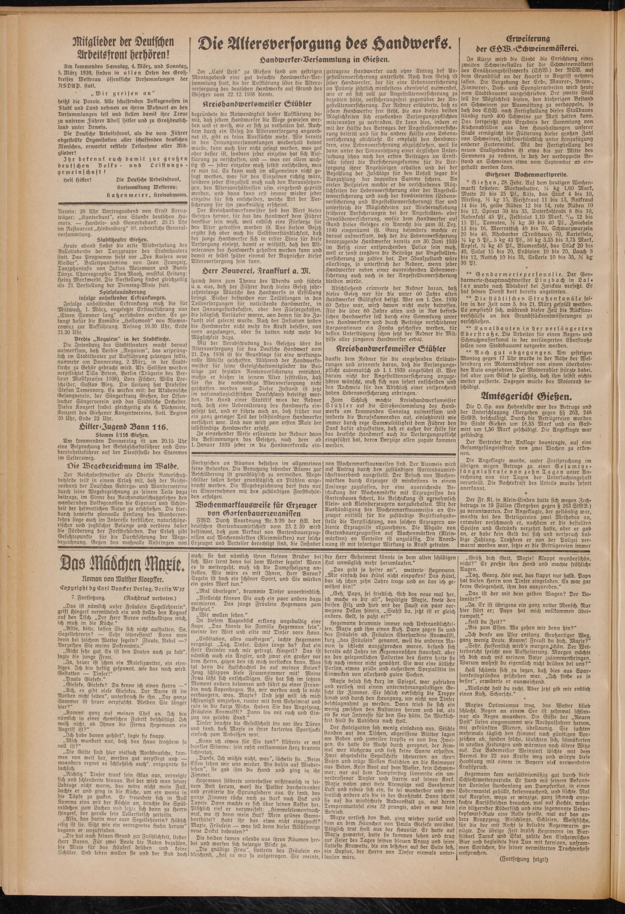 Im „Cafe Leib" zu Gießen fand am gestrigen Montagabend eine gut besuchte Handwerker-Versammlung statt, die der Aufklärung über die Altersversorgung des deutschen Handwerks auf Grund des Gesetzes vom 22.12.1938 diente.