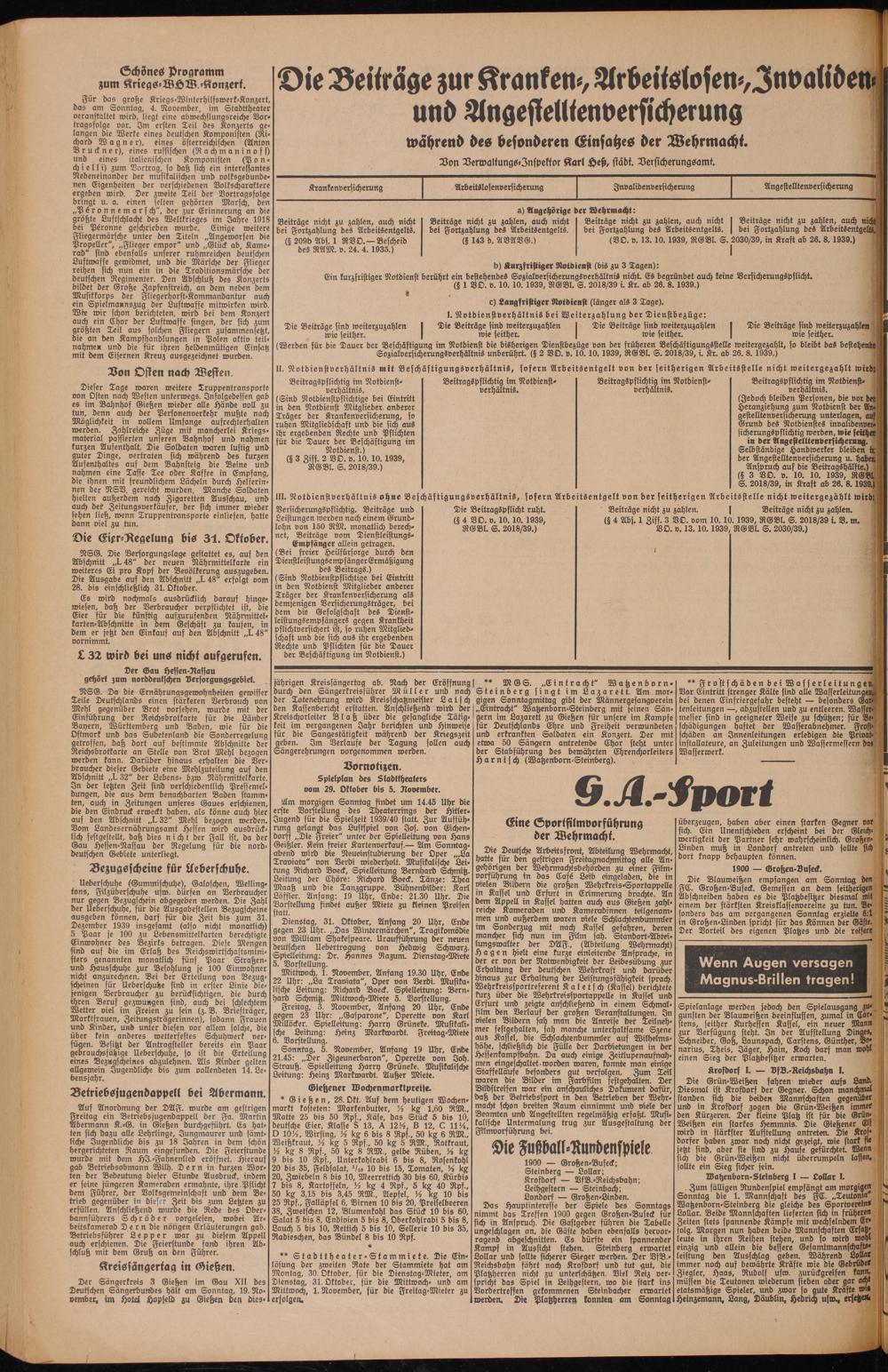 (Werden für die Dauer der Beschäftigung im Notdienst die bisherigen Dienstbezüge von der früheren Beschäftigungsstelle weitergezahlt, so bleibt das bestehend« Sozialversicherungsverhältnis unberührt. (§ 2 VO. v. 10. 10. 1939, RGBl. S. 2018/39, u Kr. ab 26. 8.1939.)