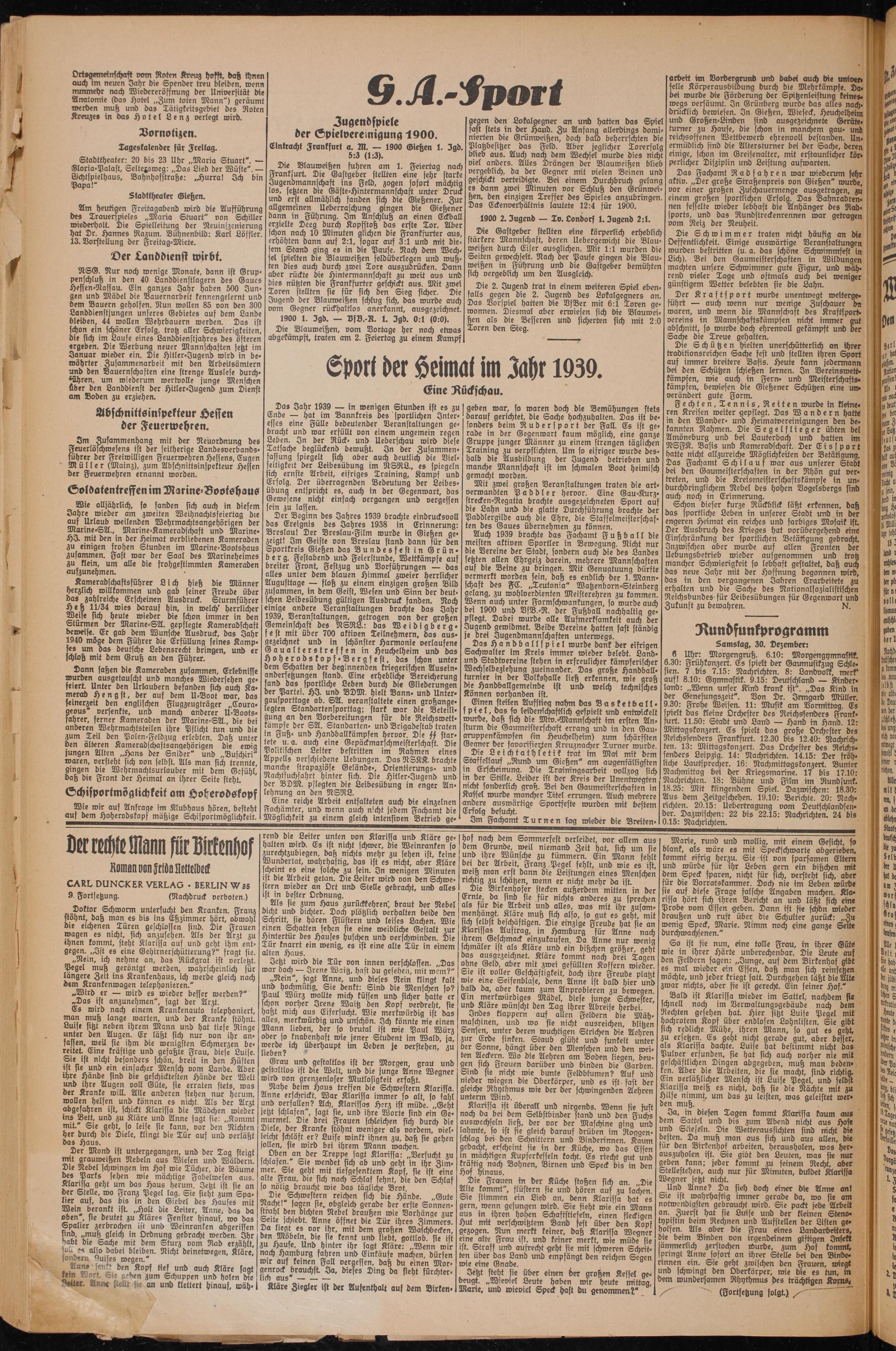 Das Jahr 1939 — in wenigen Stunden ist es zu I geben war, so waren doch die Bemühungen stets ade — hat im Bannkreis des sportlichen Inter- darauf gerichtet, die Sache hochzuhalten. Das ist be-