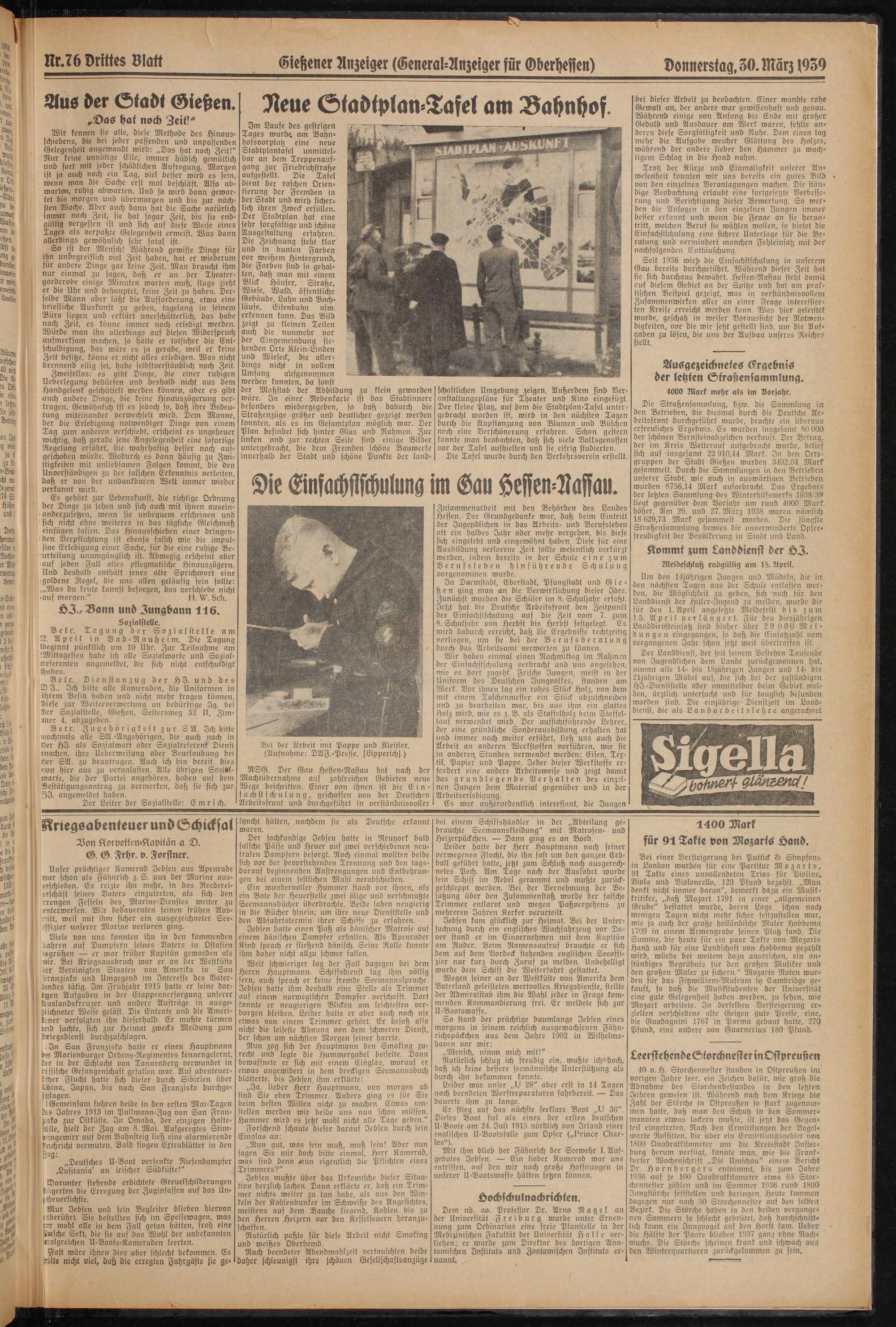 ltt.76 Drittes Blatt Giehener Anzeiger (General-Anzeiger für Gberhesien)Donnerstag. 30. März 1959