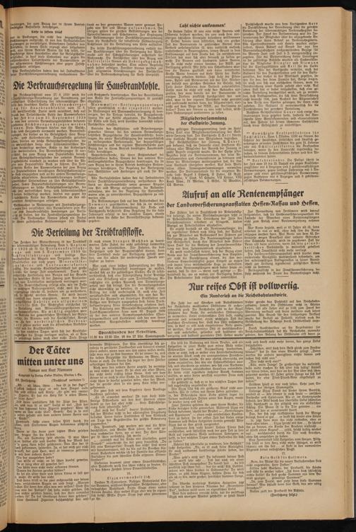 3m Reichsgesetzblatt vom 27. 8. 1939 wird die ^Durchführungs-Verordnung zur Verordnung zur ^läufigen Sicherstellung des lebenswichtigen Be- Mfs des deutschen Volkes (Verbrauchsrege- l.ng für Hausbrandkohle) vom 27.8. 139 veröffentlicht. Darin wird verordnet, daß auf A-und der Teilabschnitte Kohle der Ausweiskarten ir der Zeit bis zum 25. September 1939 j)2 von den unteren Verwaltungsbehörden bekannt- g^ebenen Höch ft m engen bezogen werden finnen. Diese Mengen dürfen nur für Wasch-, Ach- und Heizzwecke verwandt werden. Brennstoff- ezeuger, die bisher an die Gefolgschaft ihrer Berg- wrks- und Hüttenbetriebe Deputatkohle geliefert tyben, dürfen an solche Gefolgschaftsmitglieder, die ri wesentlichen berg- oder hüttenmännischen Ar-- feilen beschäftigt werden, Kohle in der bisherigen §che weiterliefern. Der Brennstofferzeuger ist ver- p ichtet, die zum Bezug von Deputatkohle berechtigen Gefolgschaftsmitglieder der unteren Derwal- tingsbehörde namhaft zu machen und über die Abgabe von Deputatkohle Buch zu führen. Die Teil- eschnitte Kohle der Ausweiskarten der zum Bezug im Deputatkohlen berechtigten Gefolgschaftsmitglie- br sind einzuziehen und an die untere Verwaltungs- byörde abzuliefern. Hausbrandlieferungen fonsttger gewerblicher Unternehmer an ihre Gefolgschaftsmit- reber, sowie Deputatkohlelieferungen von Brenn- slsferzeugern an solche Gefolgschaftsmitglieder, die ntht mit wesentlichen berg- und hüttenmännischen r beiten beschäftigt werden, dürfen nur gegen die 2- ilabschnitte Kohle der Ausweiskarte zu den all- Meinen Höchstmengen erfolgen.