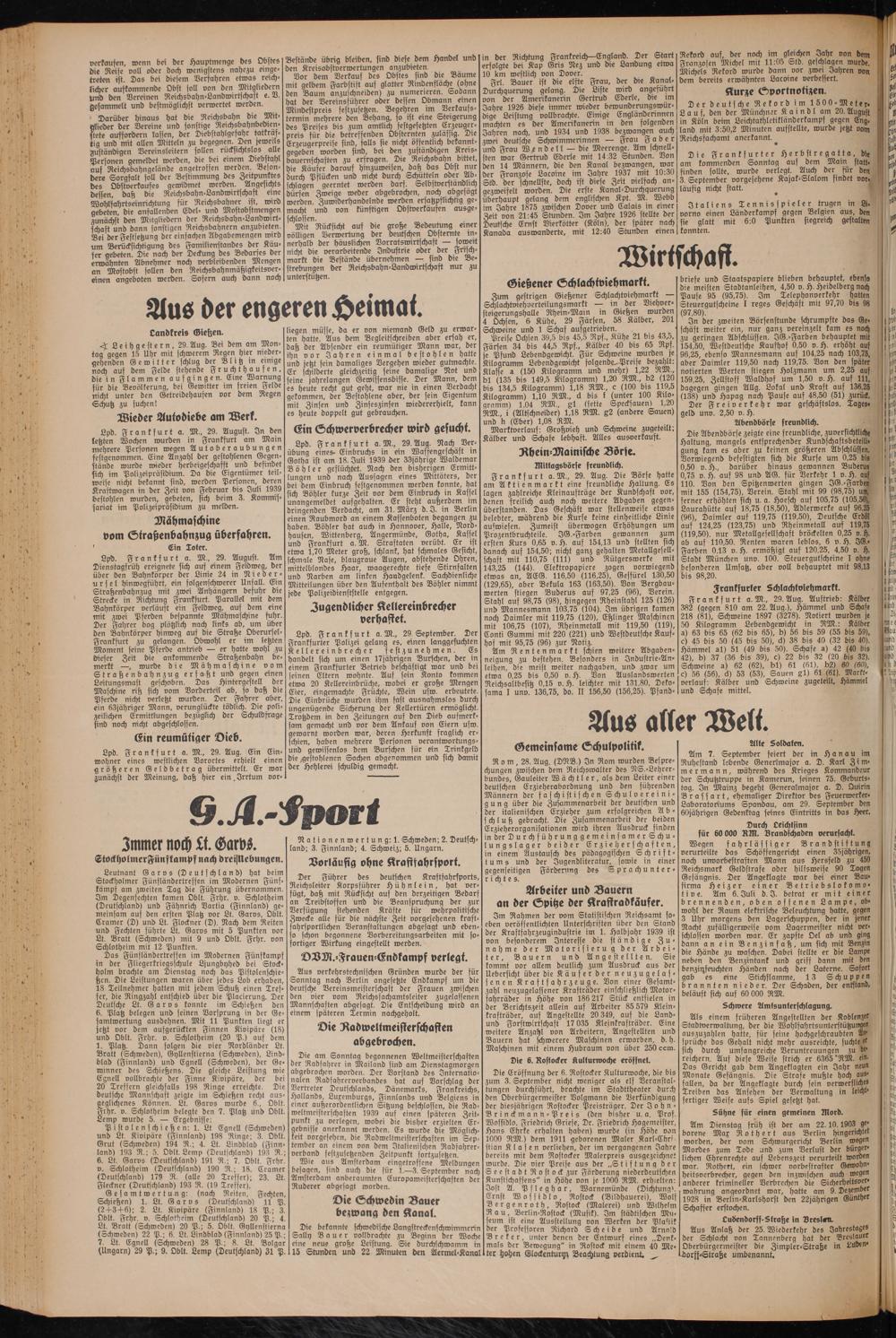 Lpd. Frankfurt a. M., 29 September. Der Frankfurter Polizei gelang es, einen langgefuchten Kellereinbrecher fest zu nehmen. Es handelt sich um einen 17jährigen Burschen, der in einem Frankfurter Betrieb beschäftigt war und bei seinen Eltern wohnte. Auf sein Konto kommen etwa 20 Kellereinbrüche, wobei er große Mengen Eier, eingemachte Früchte, Wein usw. erbeutete. Die Einbrüche wurden ihm fast ausnahmslos durch ungenügende Sicherung der Kellertüren ermöglicht. Trotzdem im den Zeitungen auf den Dieb aufmerksam gemacht und vor dem Ankauf von Eiern usw. gewarnt worden war, deren Herkunft fraglich erschien, haben mehrere Personen verantwortungs- und gewissenlos dem Burschen für ein Trinkgeld die ^gestohlenen Sachen abgenommen und sich damit der Hehlerei schuldig gemacht.