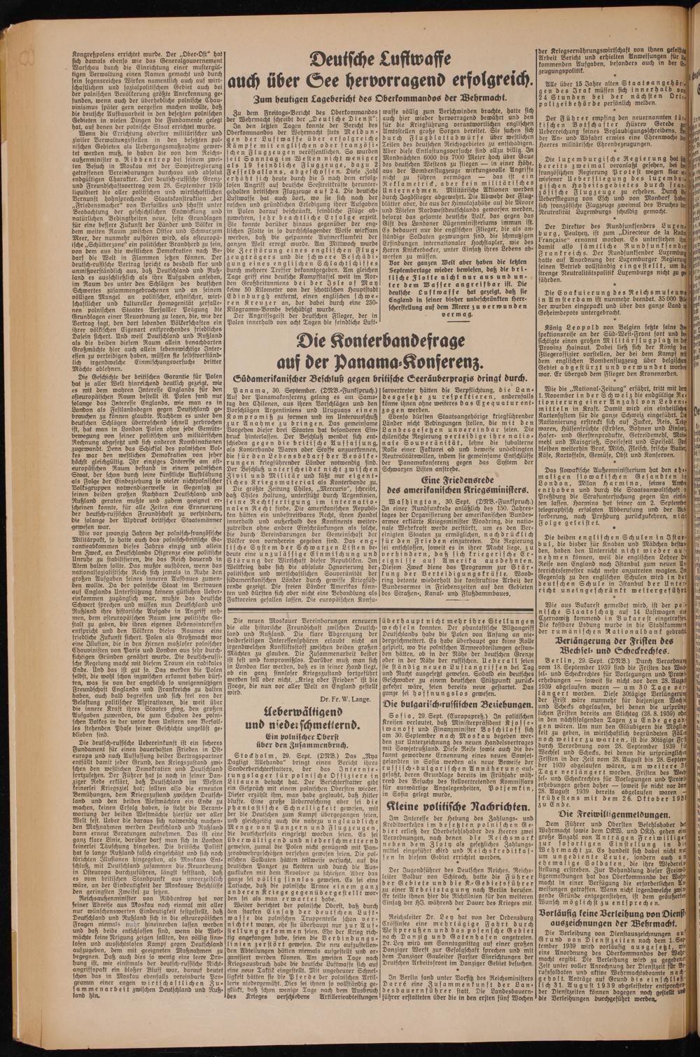 Die neuen Moskauer Vereinbarungen erneuern die alte historische Freundschaft zwischen Deutschland und Rußland. Die klare Abgrenzung der beiderseitigen Interessensphären erlaubt nicht an irgendwelchen Konfliktsstoff zwischen beiden großen Mächten zu glauben. Die Zusammenarbeit beider ist fest und kompromißlos. Darüber muß man sich in London klar werden, daß es in seiner Hand liegt, ob ein ganz sinnloser Kriegszustand fortgeführt werden soll oder nicht. „Krieg oder Frieden" ist die Frage, die nun vor aller Welt an England gestellt wird.