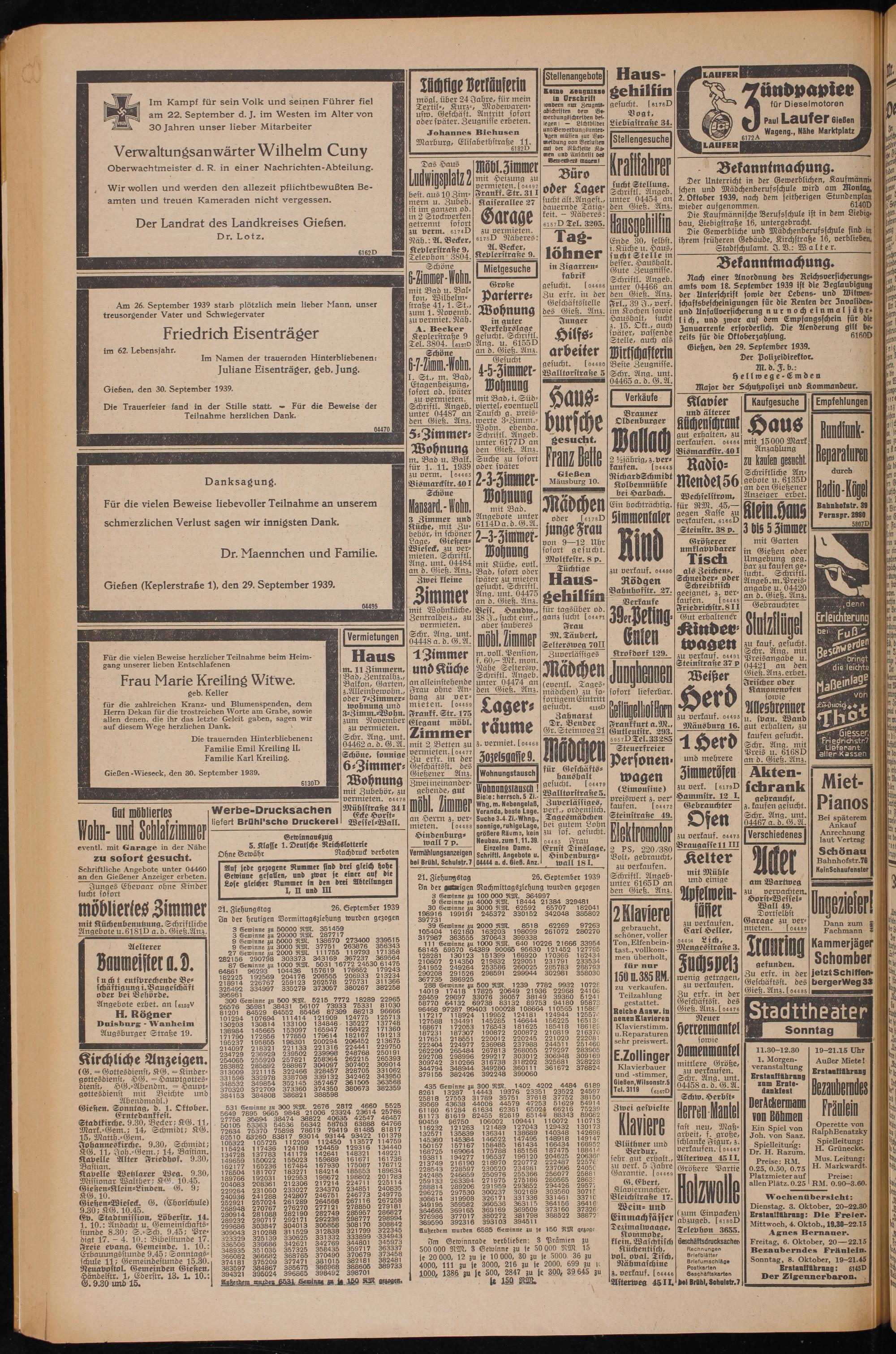 Gießen, den 29. September 1939.