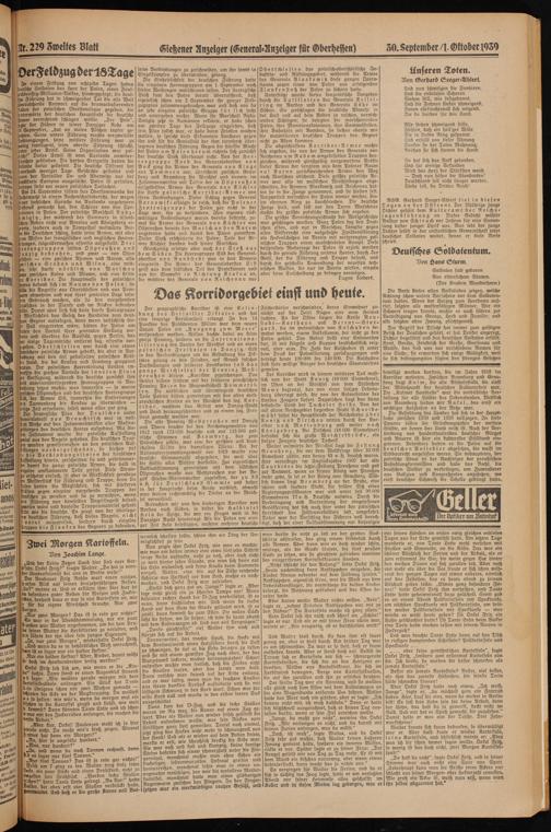 Die größte Vernichtungsschlacht der Weltgeschichte war geschlagen worden. Ganz Polen lag den Deutschen offen, und nur in Warschau kämpfte gegen alles Völkerrecht eine ausgehetzte Zivilbevölkerung als Heckenschützen im Verein mit versprengten polnischen Truppen einen aussichtslosen Kampf. Diese beispiellose Niederlage der Polen ist erzielr worden durch die geniale Führung unseres Heeres, durch 5en Geist, der die Führung und Truppe beseelt, und durch die geschickte Anwendung der neuesten technischen Waffen, die nur im Verein wirken, einzeln aber keine Entscheidung zu bringen vermögen.