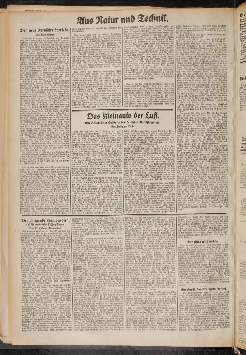 gen will. Das Ziel: Volksfluazeu 2000 Mark. Der Start: Die eins"'