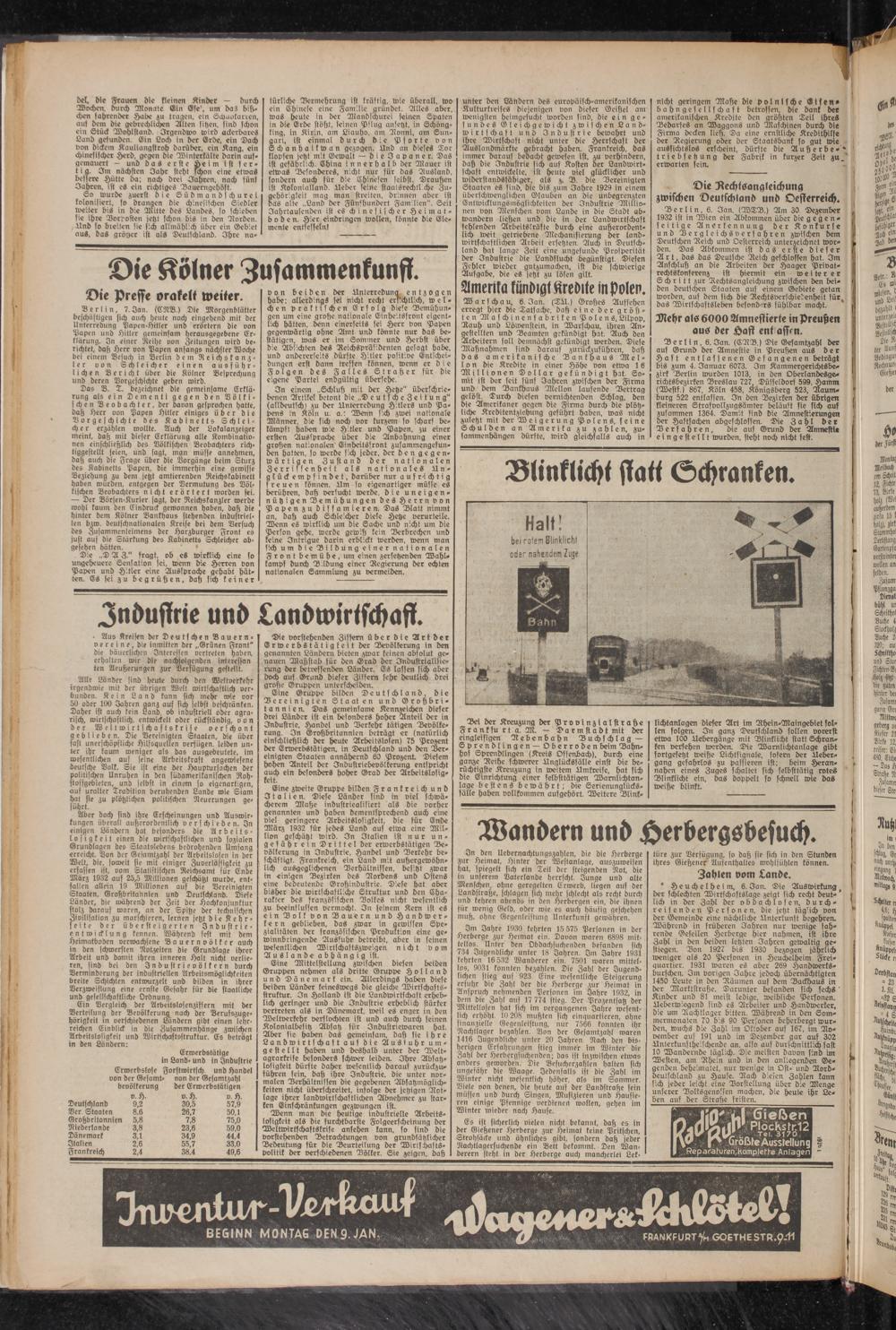 Berlin, 7. Jan. (ERB.) Die Morgenblätter beschäftigen sich auch heute noch eingehend mit der Unterredung Papen-Hitler und erörtern die von Popen und Hitler gemeinsam herausgegebene Erklärung. In einer Reihe von Zeitungen wird berichtet, dost Herr von Popen anfangs nächster Woche bei einem Besuch in Berlin dem Reichskanz - ler von Schleicher einen ausführlichen Bericht über die Kölner Besprechung und deren Vorgeschichte geben wird.