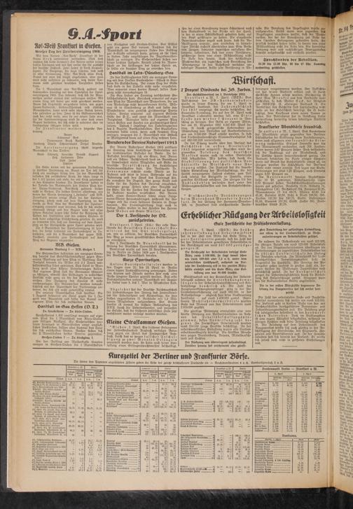 Die günstige Witterung ermöglichte eine verstärkte Absetzung von Notstandsarbeiten im Rahmen des Arbeitsbeschaffungsprogramms, dessen Auswirkung jetzt beginnt. Im Freiwilligen Arbeitsdienst wurden rund 214 000 junge Deutsche beschäftigt. An der arbeitsmarktlichen Entlastung waren alle Landesarbeitsamtsbezirke beteiligt. Die stärksten Abnahmen zeigen Brandenburg, Bayern, Mitteldeutschland und Sachsen.