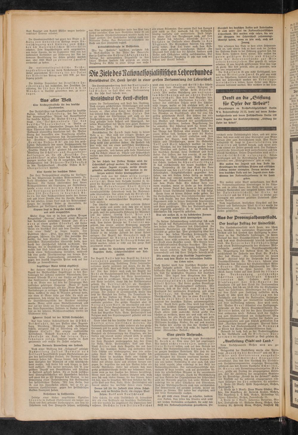Am Samstagnachmittag hielt der Rational- sozialistische Lehrerbund des Kreises Gießen im Cafe Ebel eine Versammlung ab, die sehr stark besucht war.