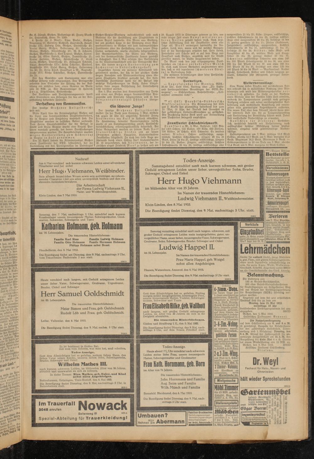 Gießen, ben 6. Mai 1933.