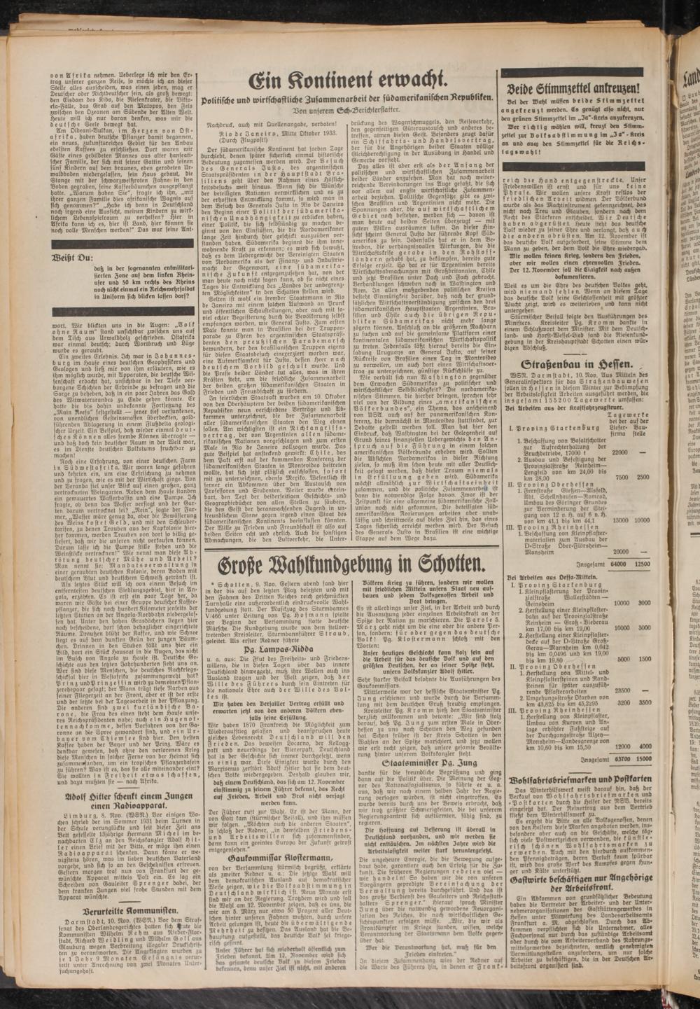 Der Führer ruft zur Wahl. Er ist der Mann, der von Gott kam (stürmischer Beifall), und ihm müssen wir folgen. „Möchten auch die anderen Staaten", so schloß der Redner, „in demselben Friedens- unb Arbeitswillen sich zusammenfinben, dann kann ein geeintes Europa ber Zukunft getrost entgegensehen."