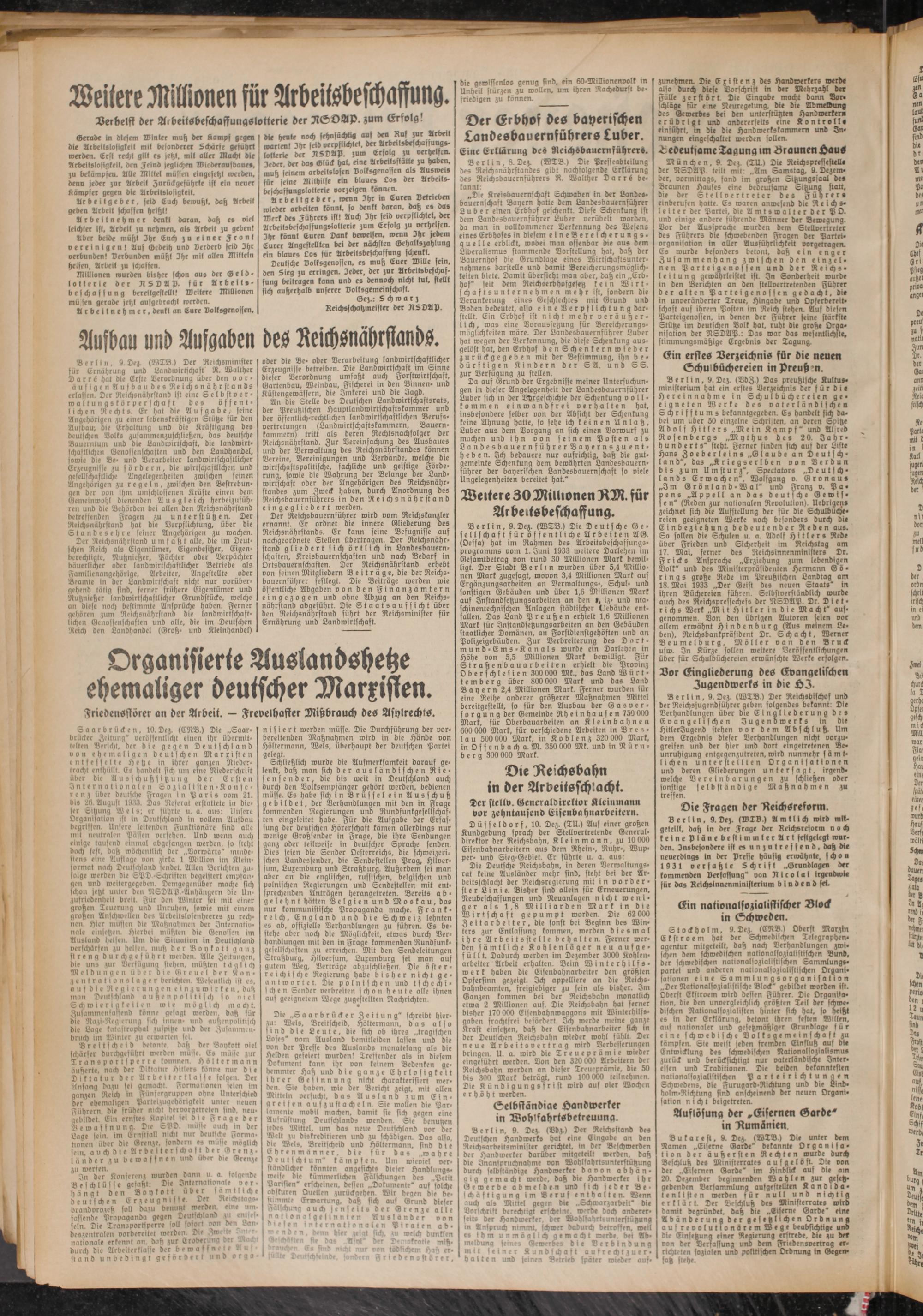 An die Stelle des Deutschen Landwirtschaftsrats, der Preußischen Hauptlandwirtschaftskammer und der öffentlich-rechtlichen landwirtschaftlichen Berufs- Vertretungen (Landwirtschaftskammern, Bauernkammern) tritt als deren Rechtsnachfolger der Reichsnährstand. Zur Vereinfachung des Ausbaues und der Verwaltung des Reichsnährstandes können Vereine, Vereinigungen und Verbände, welche die wirtschaftspolitische, sachliche und geistige Förde- rung, sowie die Wahrung der Belange der Landwirtschaft ober ber Angehörigen bes Reichsnährstandes zum Zweck haben, durch Anordnung des Reichsbauernführers in den Reichsnährstand eingegliedert werden.