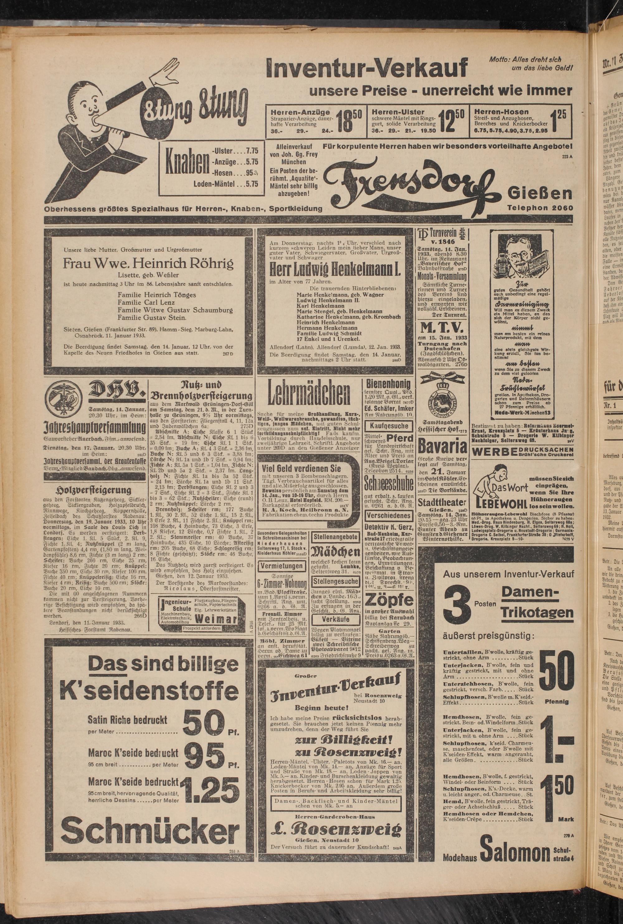 Gießen, den 12. Januar 1933.