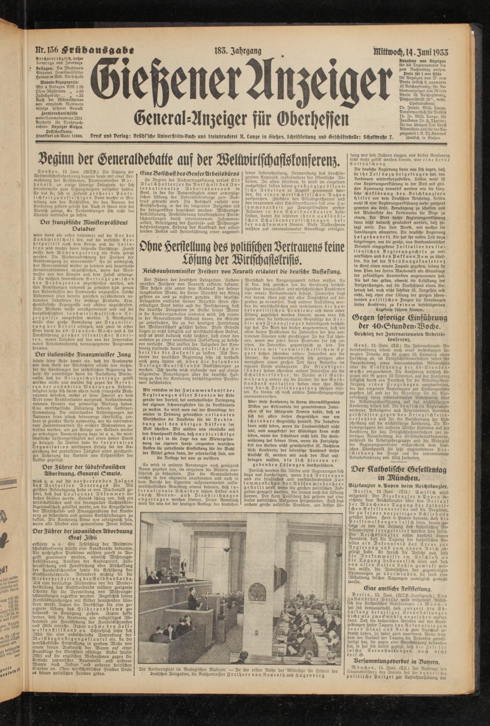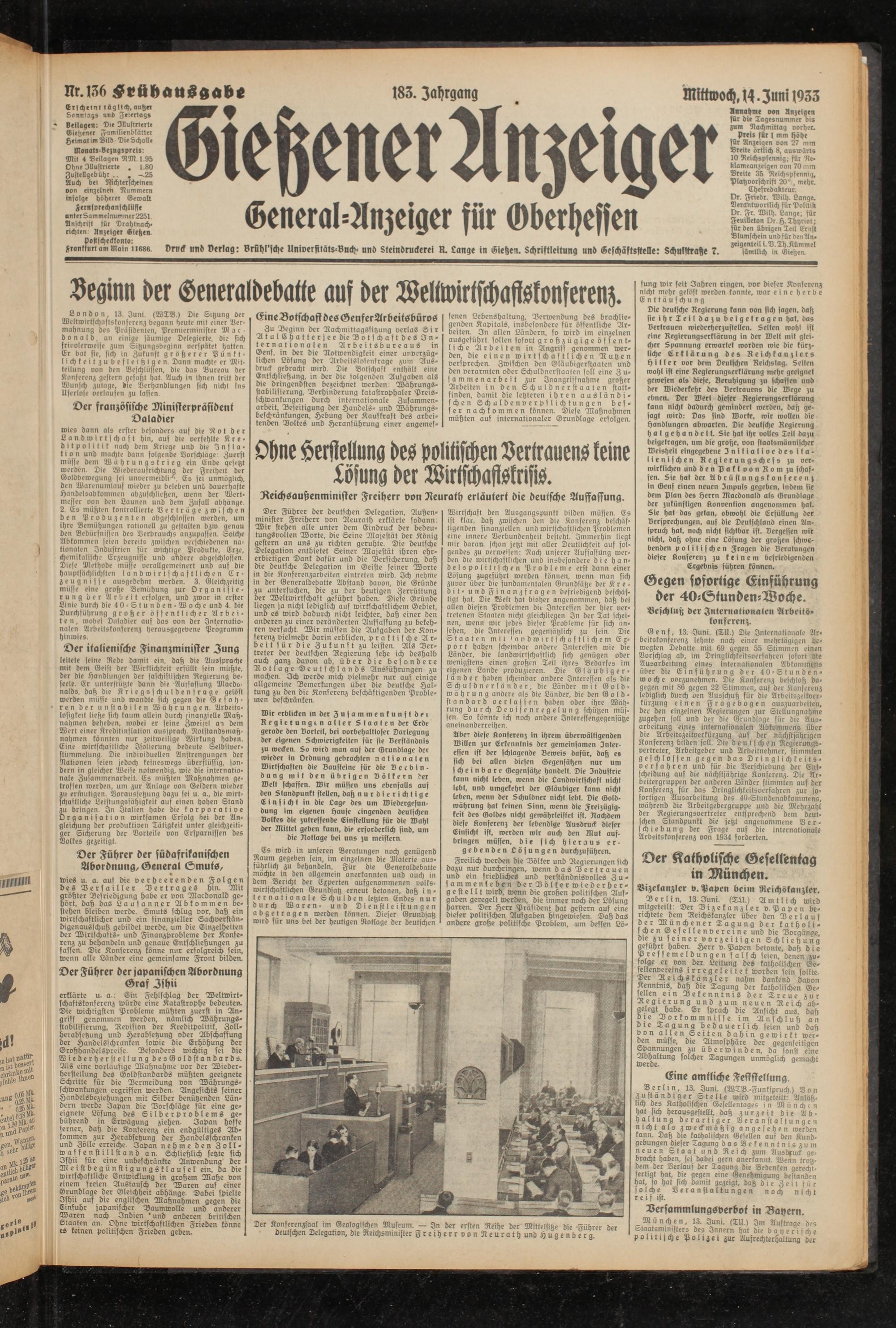 Drutf und Verlag: vrühl'fche Univerfitäts-Vuch- und Stcinöruderei R. Lange in Giehen. Schriftleitung und Geschäftsstelle: Zchulstrafte 7.