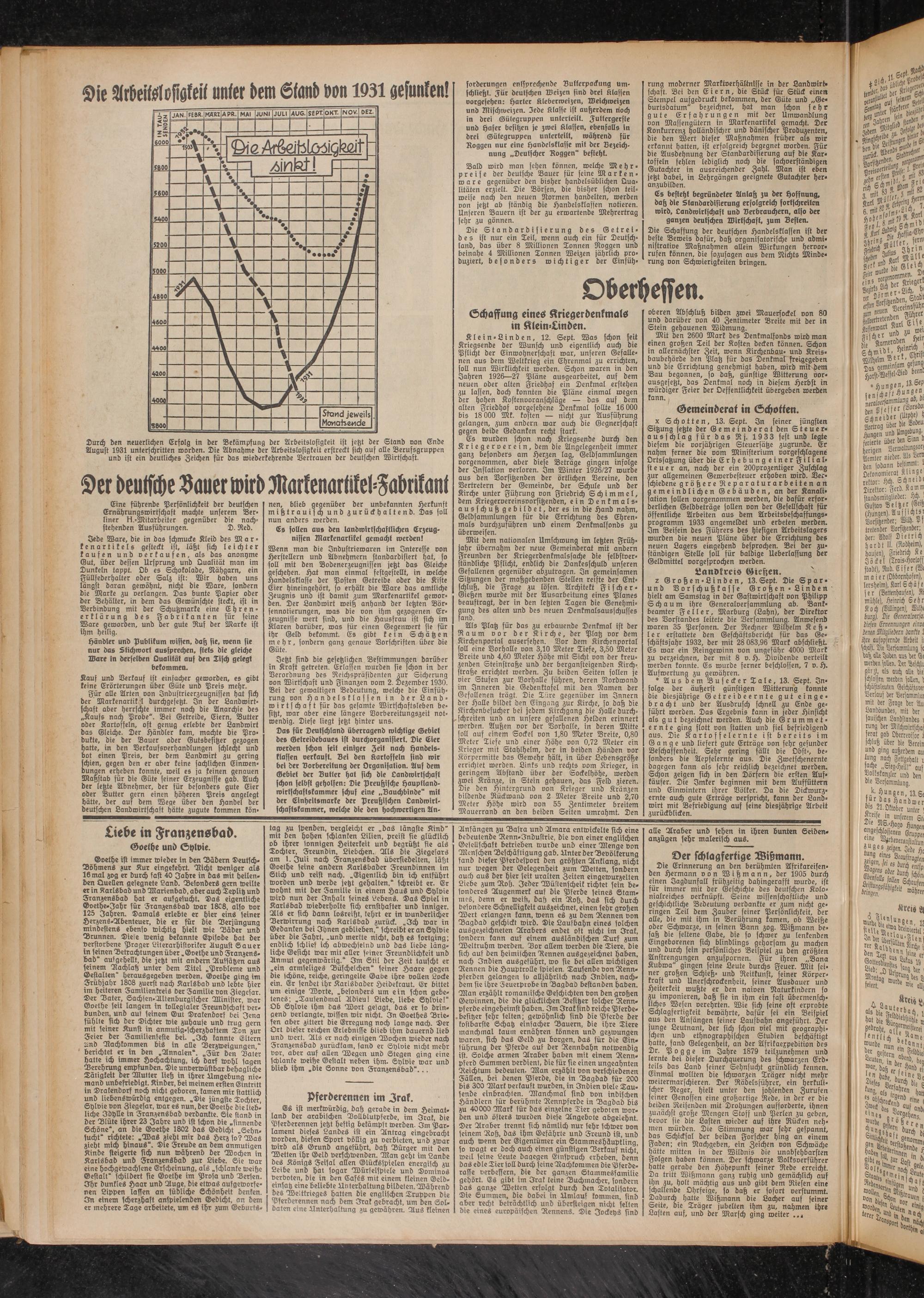 Durch den neuerlichen Erfolg in der Bekämpfung der Arbeitslosigkeit ist jetzt der Stand von Ende August 1931 unterschritten worden. Die Abnahme der Arbeitslosigkeit erstreckt sich auf alle Berufsgruppen und ist ein deutliches Zeichen für das wiederkehrende Vertrauen der deutschen Wirtschaft.
