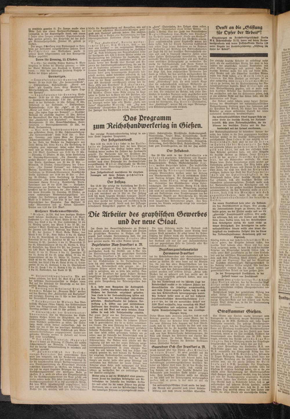 Das Programm zum Reichshandwerkertag in Gießen.