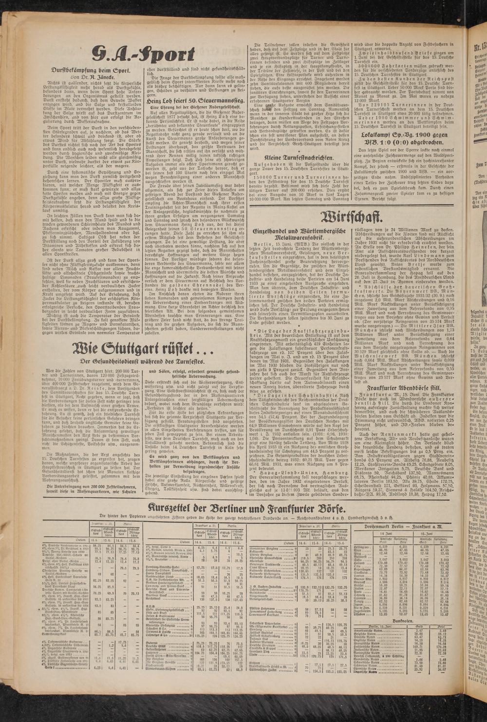 Zu den besten Kunden der Reichspost zählt die Geschäftsstelle für das 15. Deutsche Turnfest in Stuttgart, lieber 50 000 Mark Porto sind bisher gebraucht worden. Der Portobedarf nimmt von Monat zu Monat zu. Im Mai waren es nahezu 12 000 Mark.