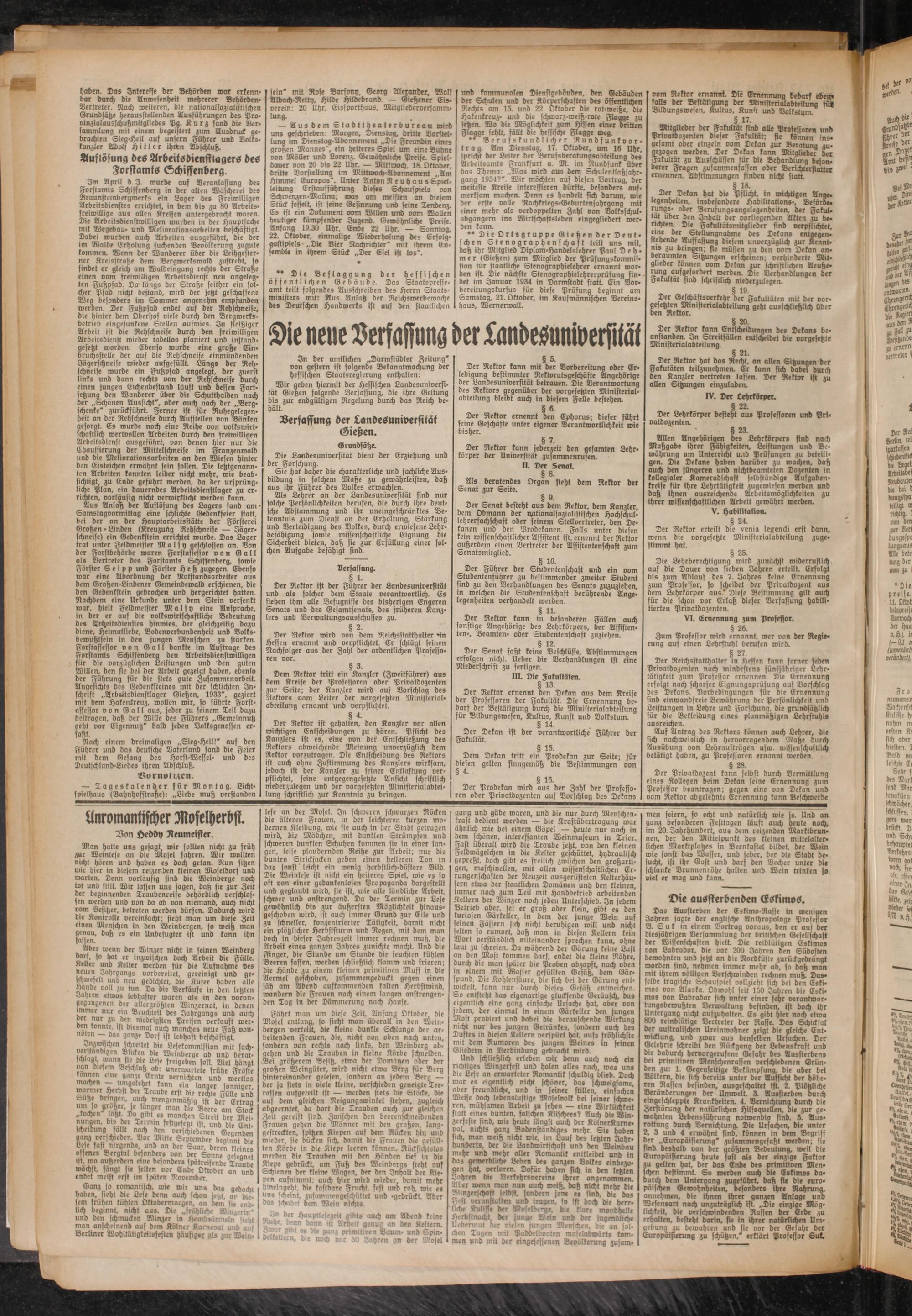 Wir geben hiermit der Hessischen Landesunioersi- tät Gießen folgende Verfassung, die ihre Gellung bis zur endgültigen Regelung durch das Reich behält.
