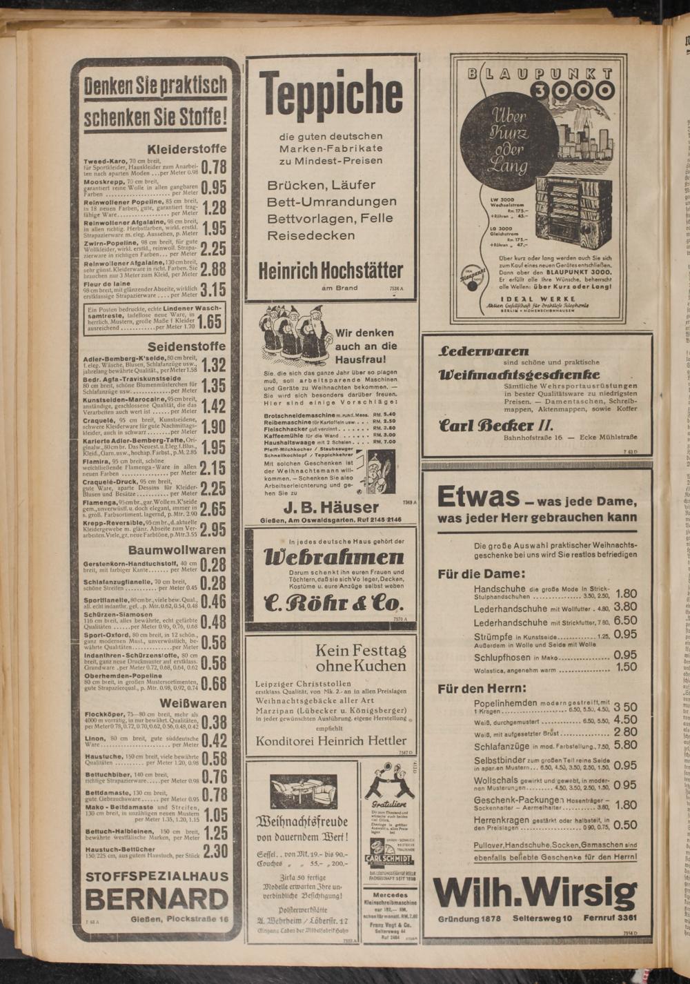 Sämtliche Wehrsportausrüstungen in bester Qualitätsware zu niedrigsten Preisen. — Damentaschen, Schreibmappen, Aktenmappen, sowie Koffer