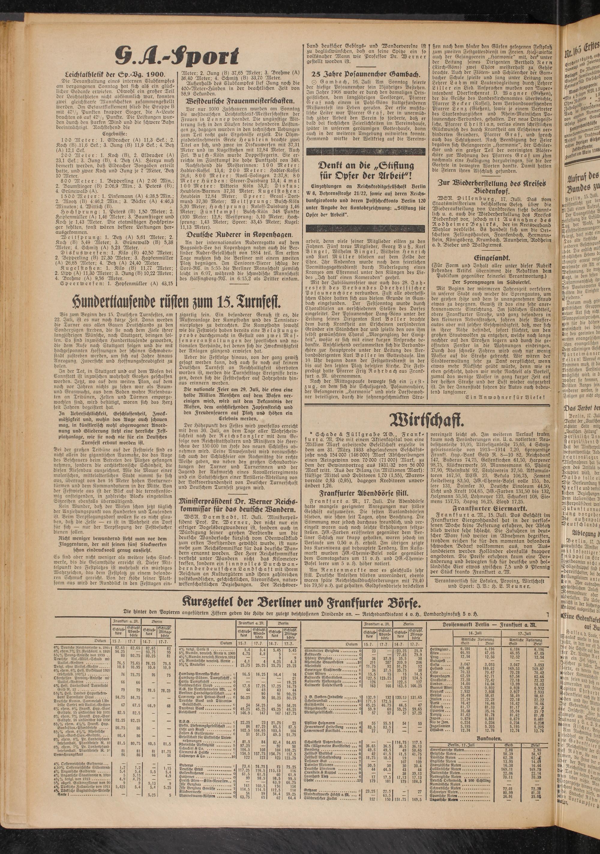 Verantwortlich für Lokales, Provinz, Wirtschaft unb Sport: I. 23.: H. L. Neuner.