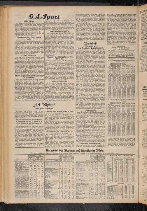 Die matte Tendenz an der Frankfurter Getreidebörse hielt auch in dieser Woche an. Die Preise gaben überwiegend weiter etwas nach. Da neues Brotgetreide ziemlich eingefahren ist, hat sich das Angebot verstärkt, was bei der herrschenden Kaufunlust naturgemäß zu leichten Rückgängen führte. Das ungemein schleppende Mehlgeschäft gestattete den Mühlen nur die Aufnahme kleinster Quantitäten.