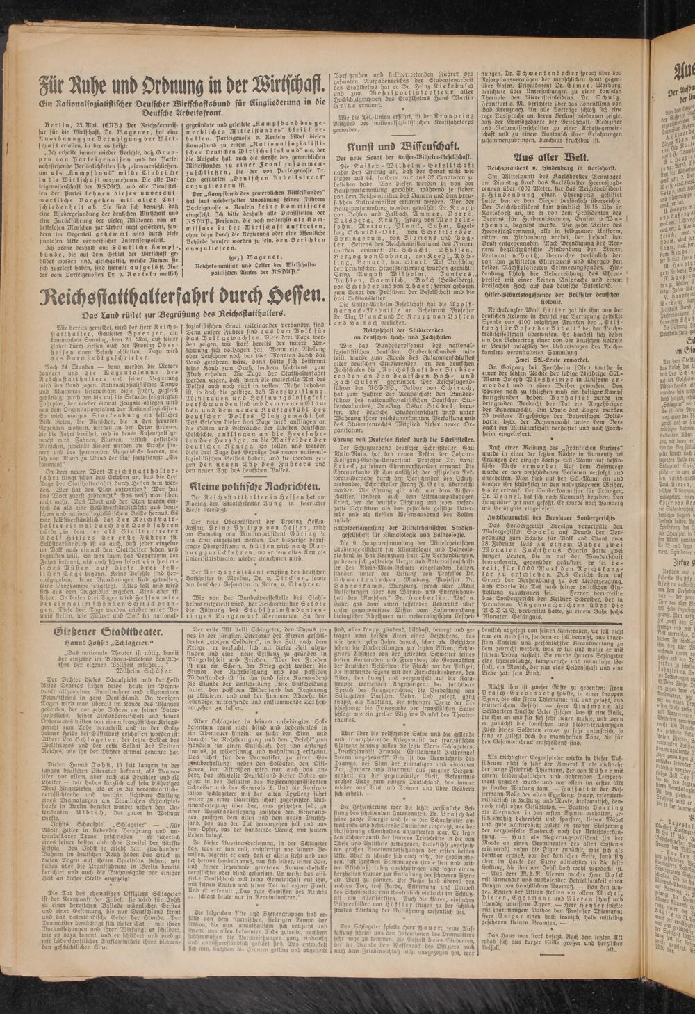 Wie bereits gemeldet, wird der Herr Reichs- statthalter, Gauleiter Sprenger, am kommenden Sonntag, dem 28. Mai, auf seiner Fahrt durch Hessen auch der Provinz Oder- Hessen einen Besuch abstatten. Dazu wird aus Darmstadt geschrieben: