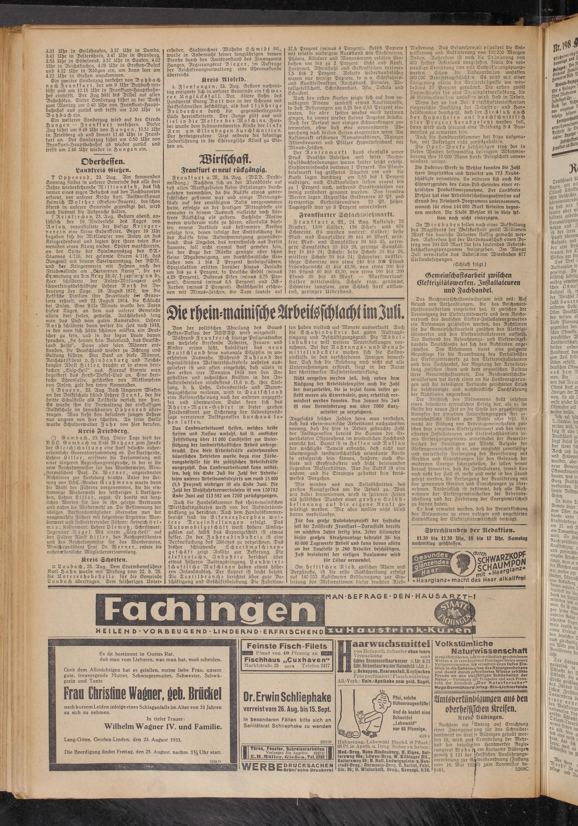 Lang-Göns, Großen-Linden, den 23. August 1933.