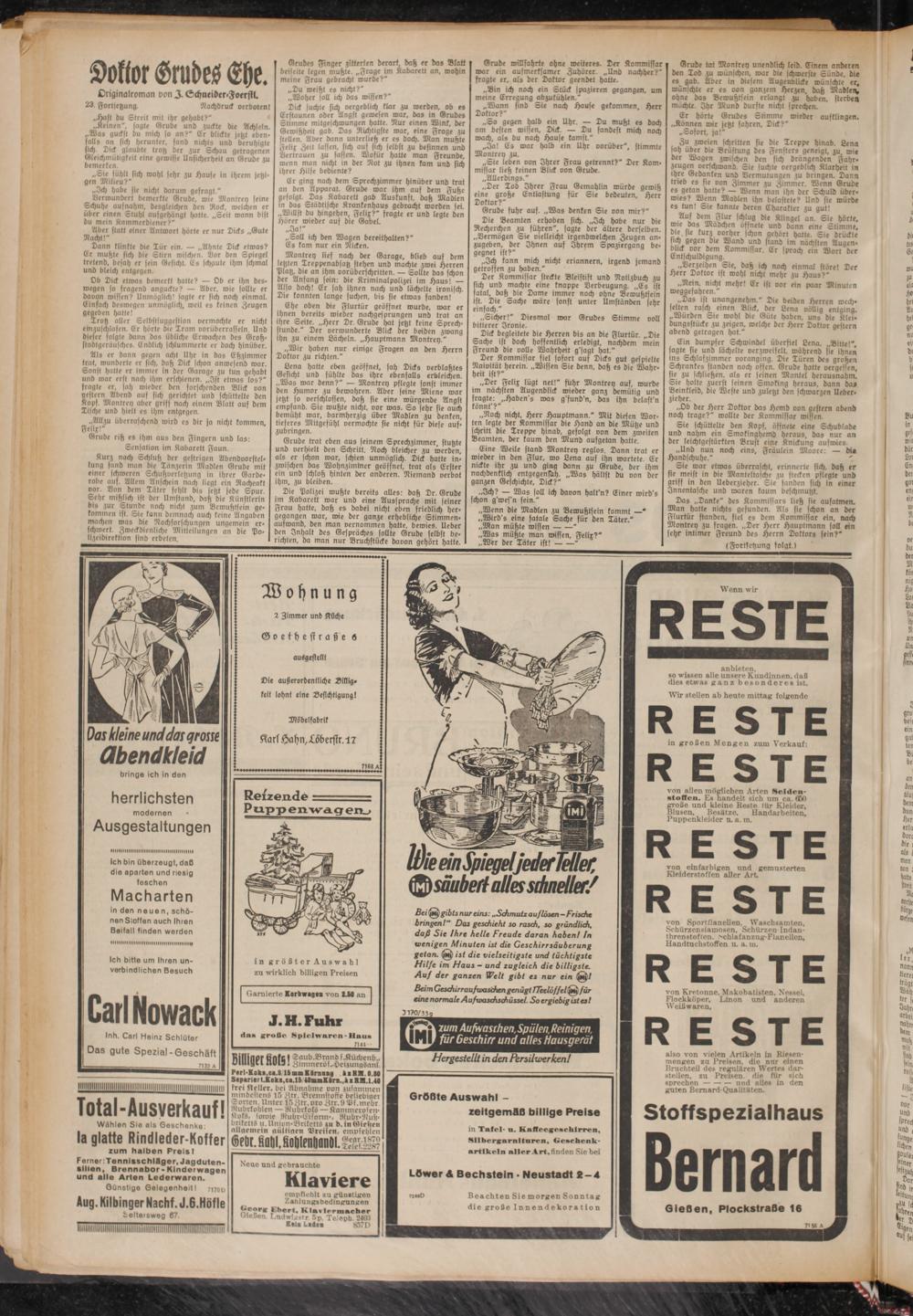 von allen möglichen Arten Neiden n(offen. Es handelt sich um ca. 6öO große und kleine Reste für Kleider, Blusen, Besätze, Handarbeiten, Puppenkleider u. a. m.