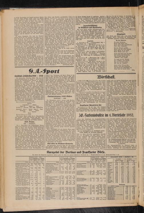 Trotz des Anhaltens der handelspolitischen Schwierigkeiten im 4. Vierteljahr 1932 waren nach dem Bericht der IG.-Farbenindustrie AG. die Anzeichen einer beginnenden Wirt- schaftsbelebung, allgemein betrachtet, weiter zu beobachten, zum Teil haben sie sich sogar vermehrt. Die saisonmäßigen Rückgänge wurden diesmal durch eine leichte, konjunkturelle Ge- schäftObesserung ausgeglichen.
