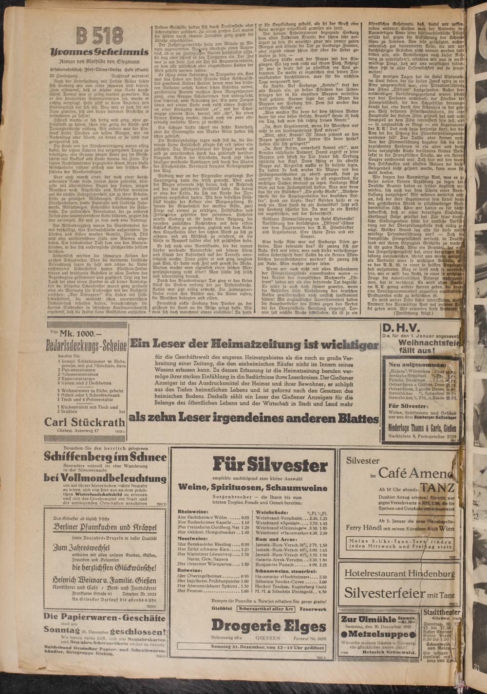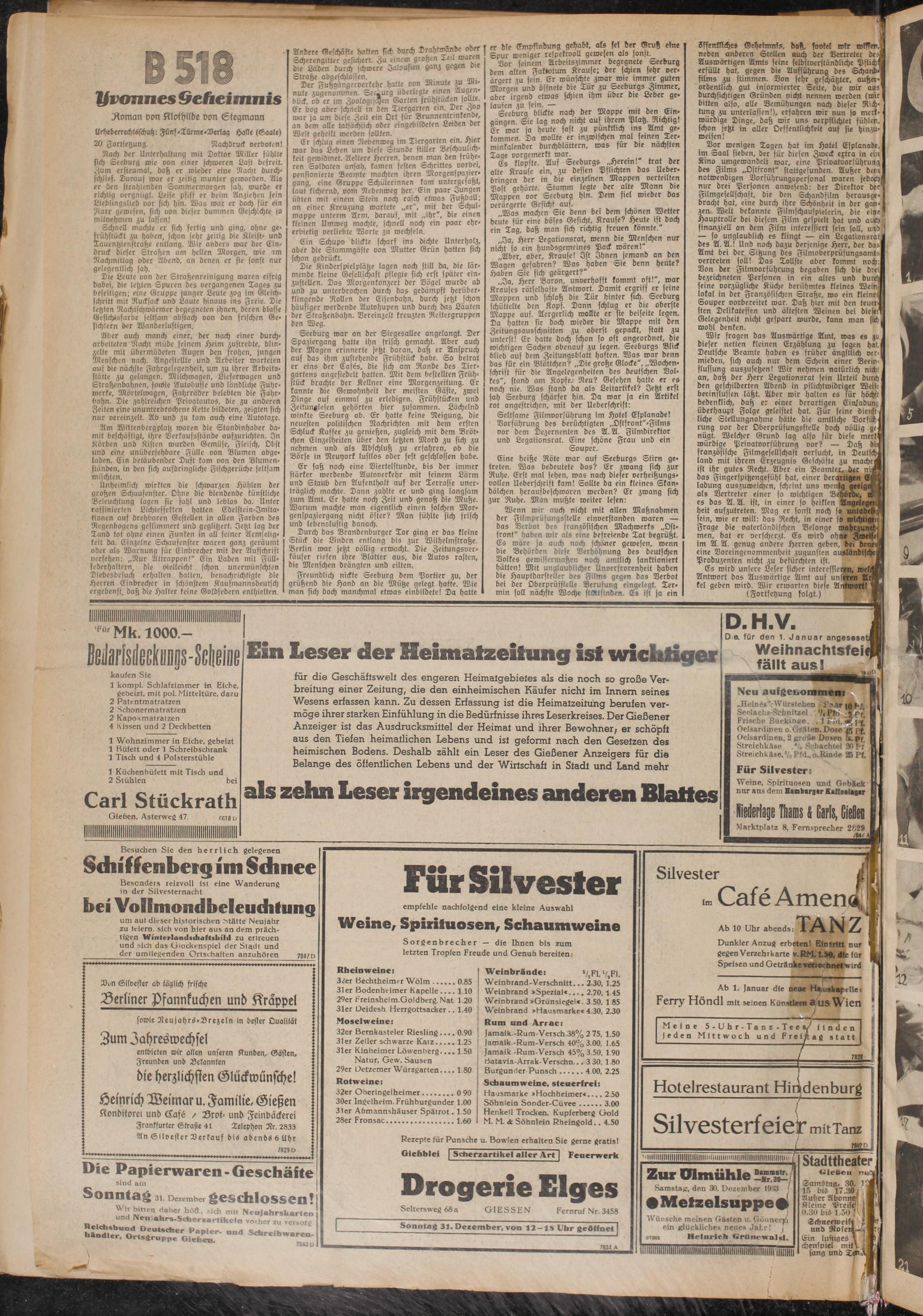 für die Geschäftswelt des engeren Heimaigebieies als die noch so große Verbreitung einer Zeitung, die den einheimischen Käufer nicht im Innern seines Wesens erfassen kann. Zu dessen Erfassung ist die Heimatzeitung berufen vermöge ihrer starken Einfühlung in die Bedürfnisse ihres Leserkreises. Der Gießener Anzeiger ist das Ausdrucksmiitel der Heimat und ihrer Bewohner, er schöpft aus den Tiefen heimatlichen Lebens und ist geformt nach den Gesetzen des heimischen Bodens. Deshalb zählt ein Leser des Gießener Anzeigers für die Belange des öffentlichen Lebens und der Wirtschaft in Stadt und Land mehr